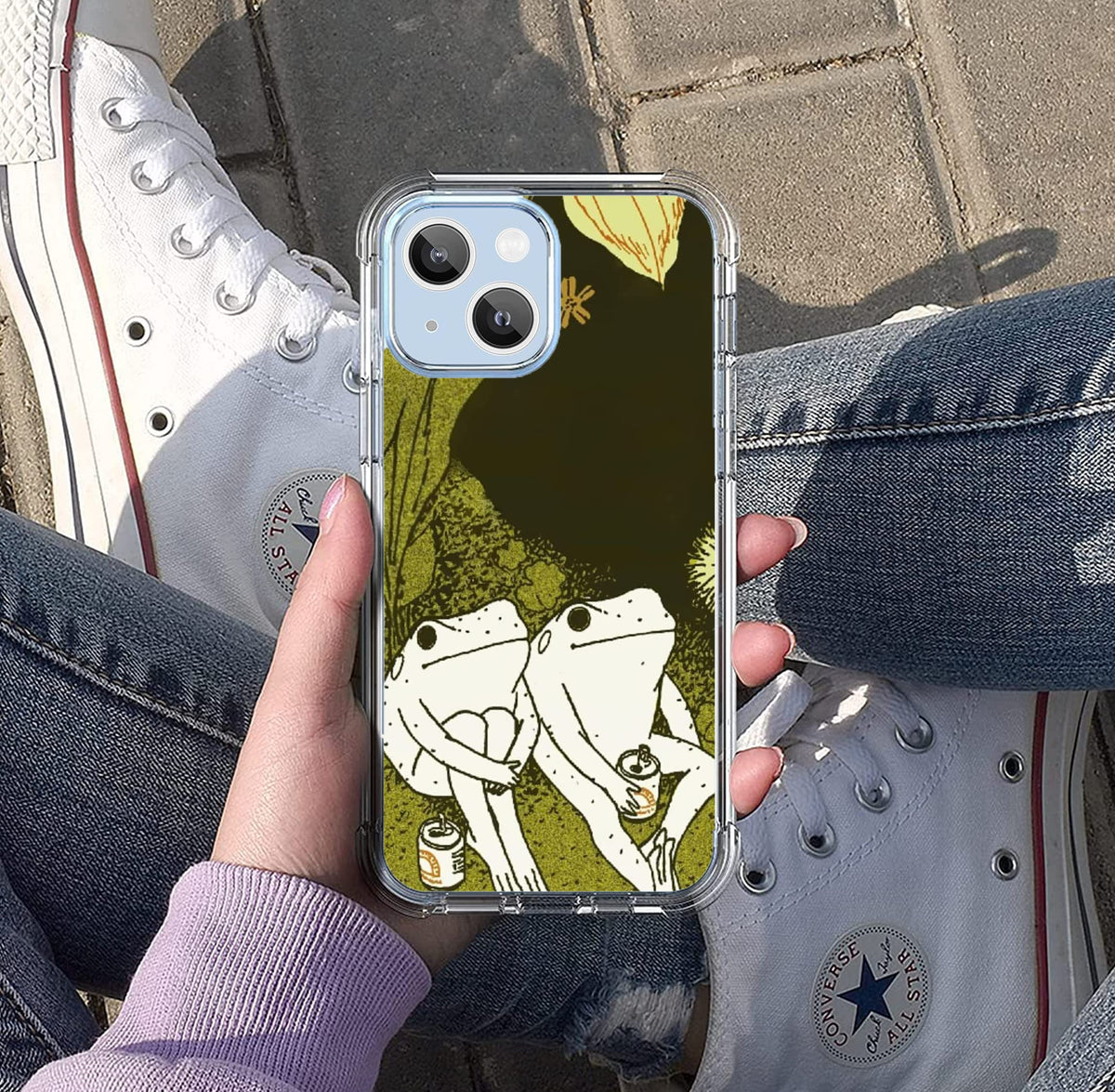 Nsyosio Reto Frogs Case For Iphone 13,Aesthetic Drinking Frogs Case For Men Women,Unique Cool Tpu Bumper Case Compatible With Ip