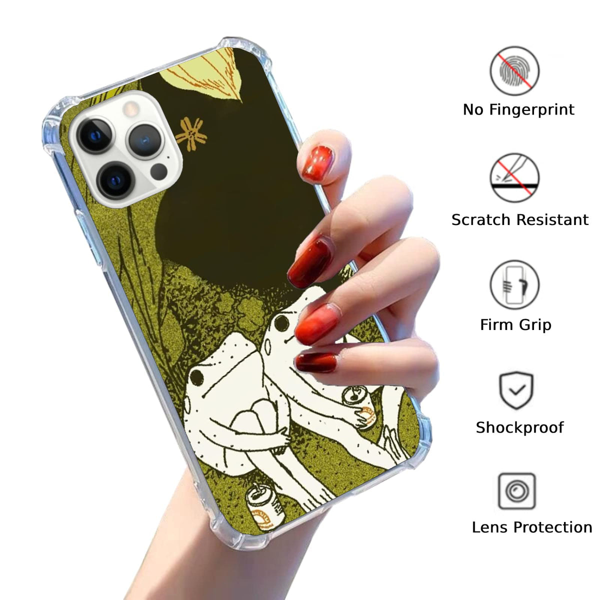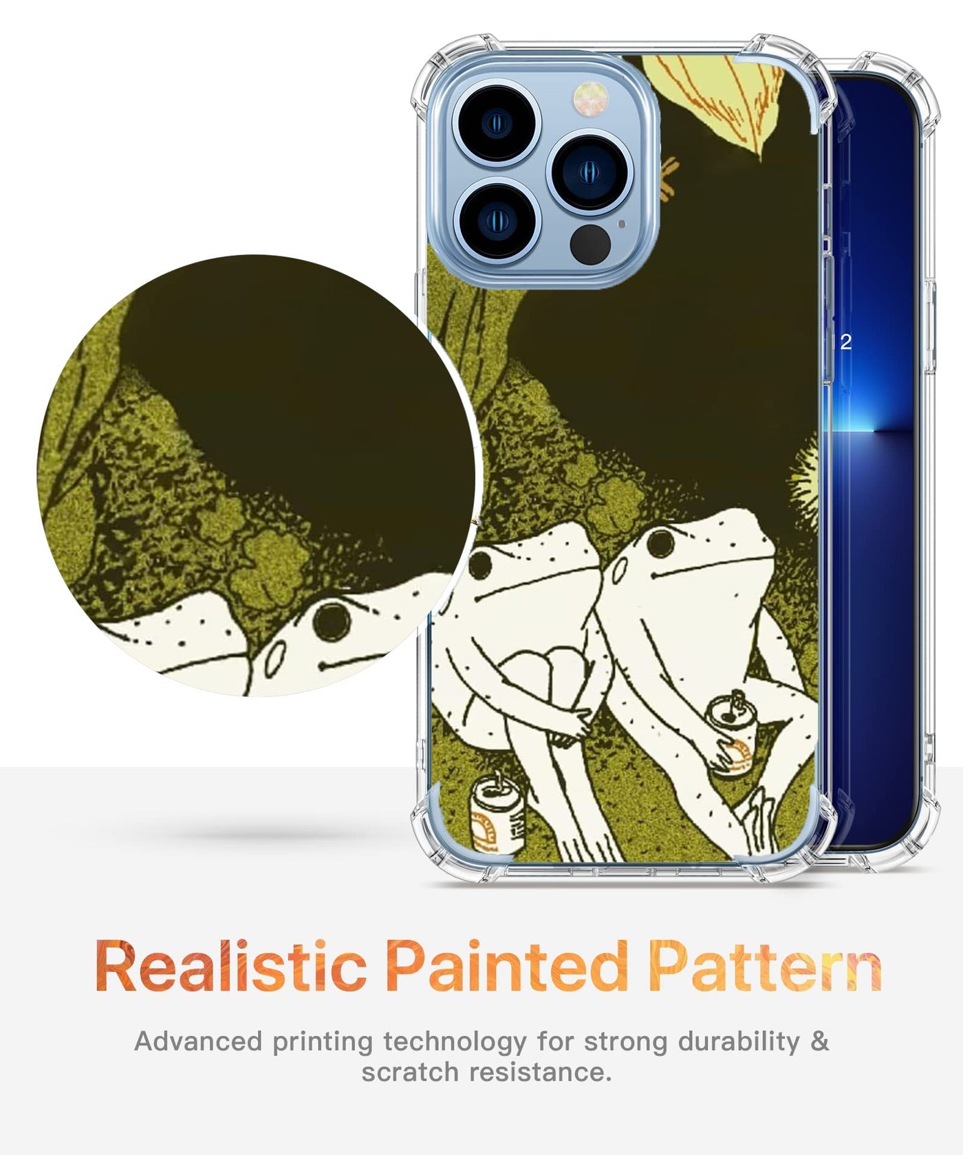 Nsyosio Reto Frogs Case For Iphone 13 Pro Max,Aesthetic Drinking Frogs Case For Men Women,Unique Cool Tpu Bumper Case Compatible