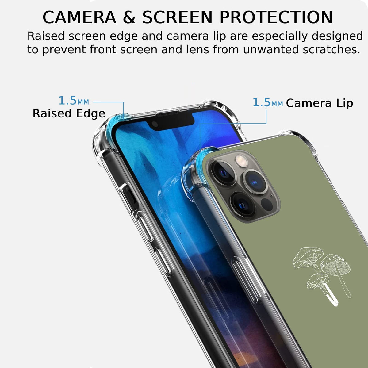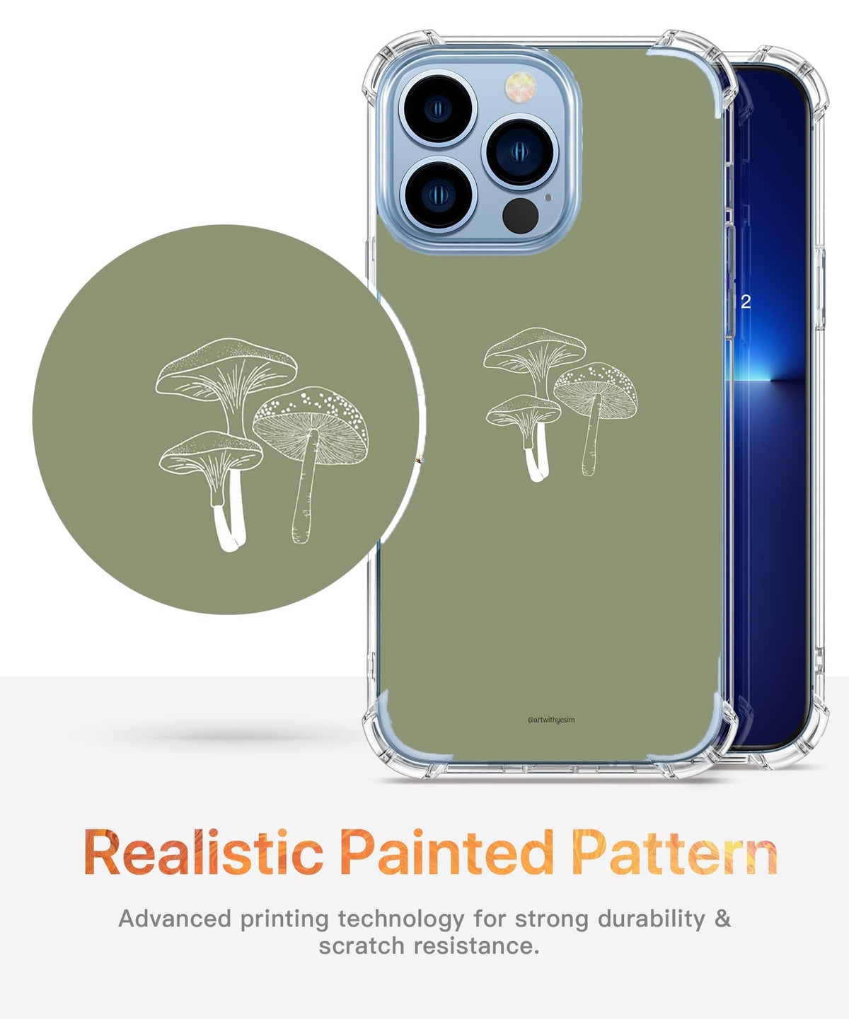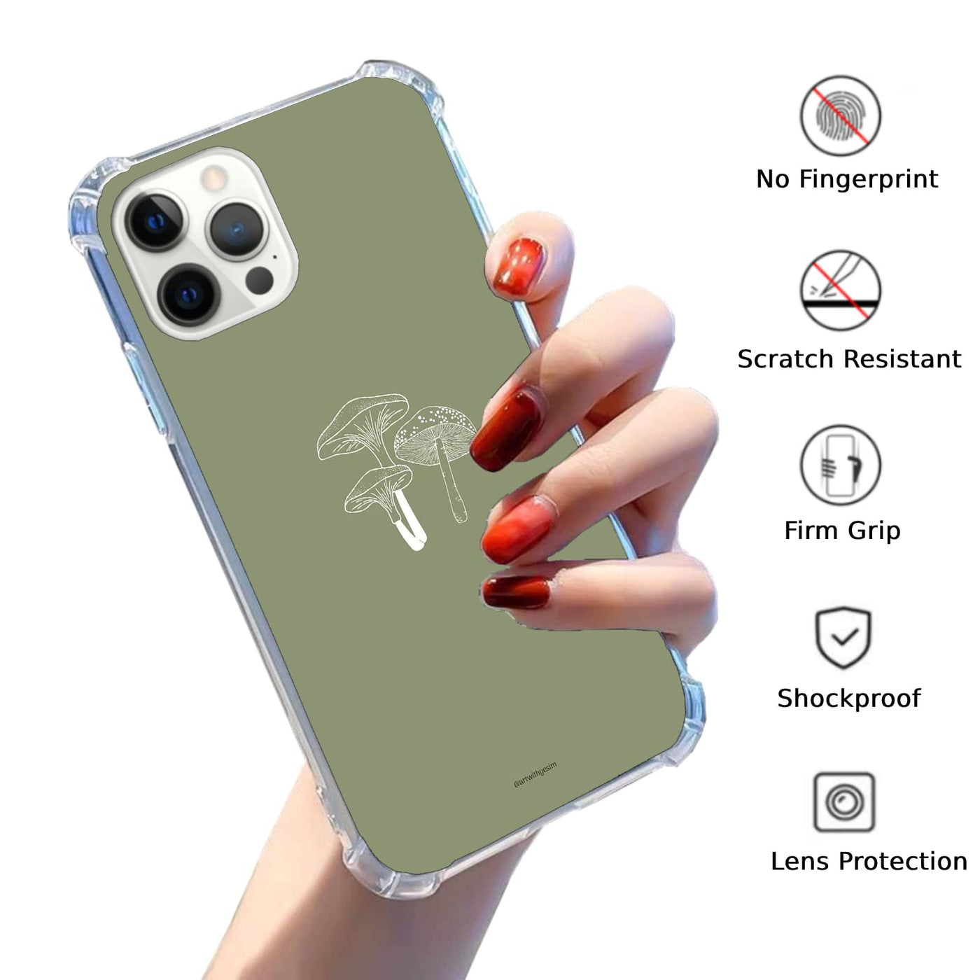Nsyosio Sage Green Mushroom Case For Iphone 13 Pro Max,Minimalist Aesthetic Plant Phone Case For Men Women, Unique Trendy Bumper