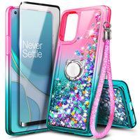 Nznd Oneplus Nord N200 5G Case With Tempered Glass Screen Protector (Maximum Coverage), Ring Holder/Wrist Strap, Sparkle Glitter