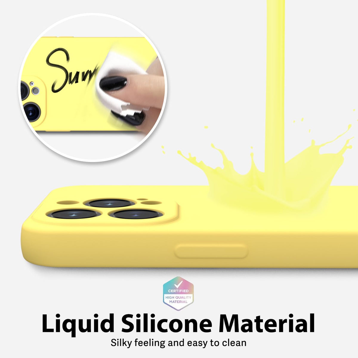Q: What material is the oakxco iPhone 13 Pro case made of?A: The case is made from high-quality liquid silicone, which provides a soft touch, anti-slip grip, and durable protection against scratches and drops.