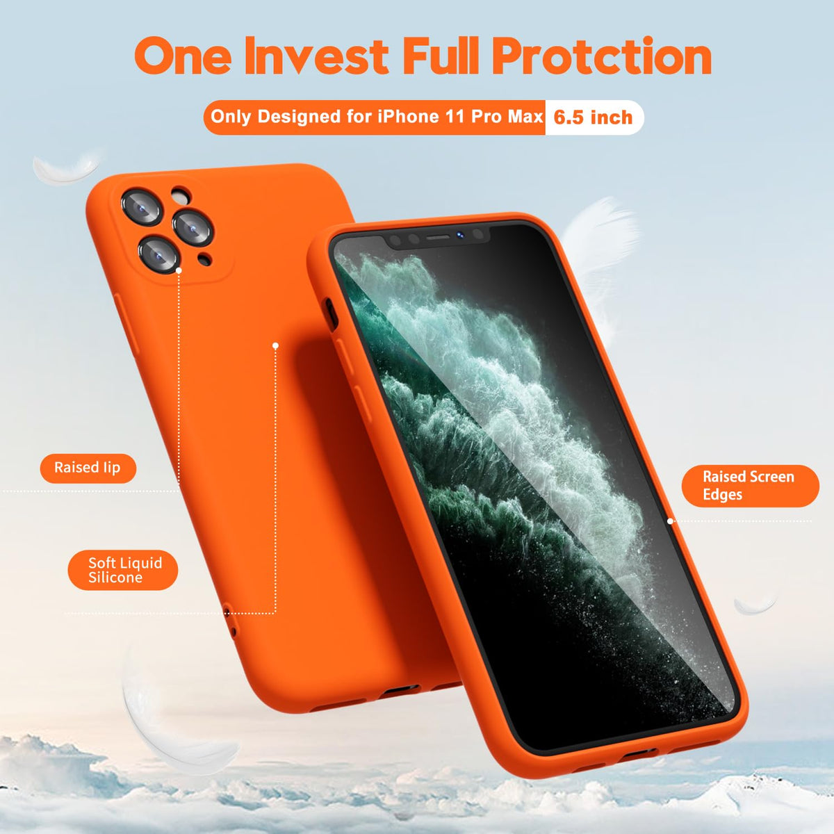 Oakxco For Iphone 11 Pro Max Phone Case Liquid Silicone, Neon Bright Solid Color, Thin Slim Soft Rubber Gel Matte Tpu Plain Simp