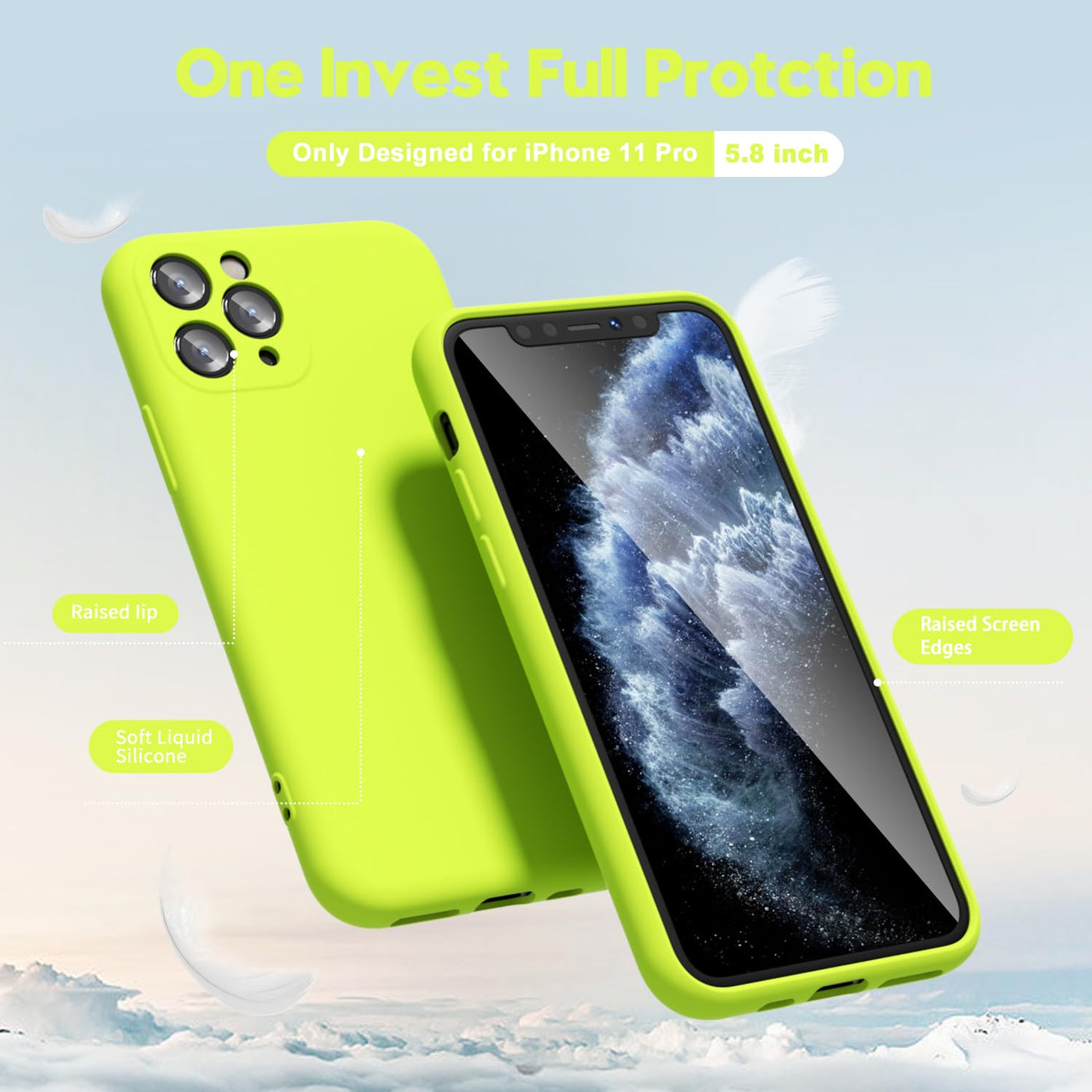 Oakxco For Iphone 11 Pro Phone Case Liquid Silicone, Neon Bright Solid Color, Thin Slim Soft Rubber Gel Matte Tpu Plain Simple C