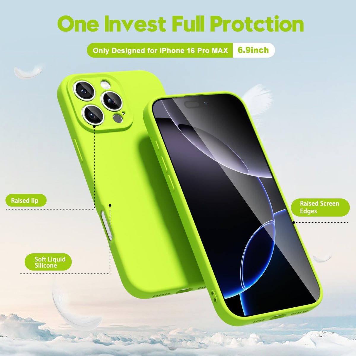 Oakxco For Iphone 16 Pro Max Phone Case Liquid Silicone, Neon Bright Solid Color, Thin Slim Soft Rubber Gel Matte Tpu Plain Simp