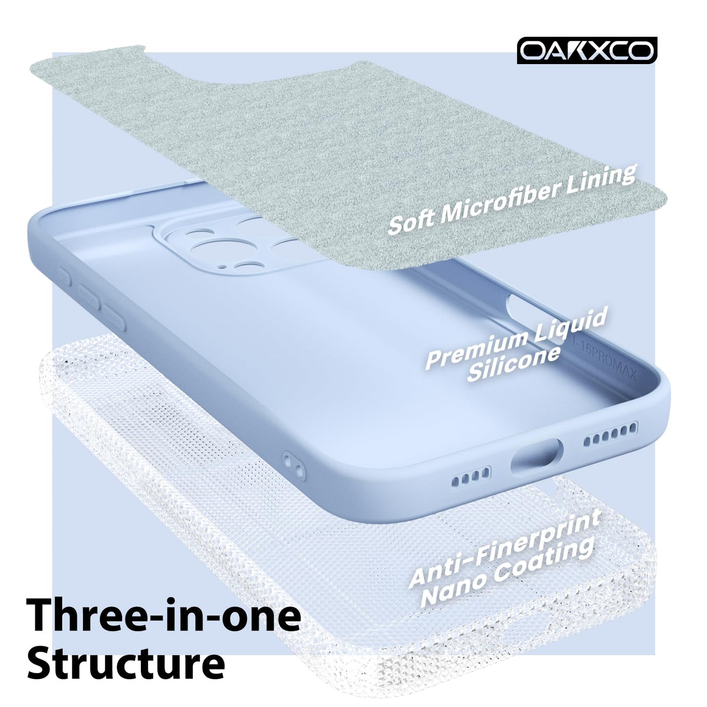 Q: What materials are used in the construction of the oakxco iPhone case?A: The oakxco case is made from high-quality, nature-friendly silicone gel material, which provides durability, a baby skin-like soft touch, and a smooth rubber grip that is anti-slip and easy to clean.