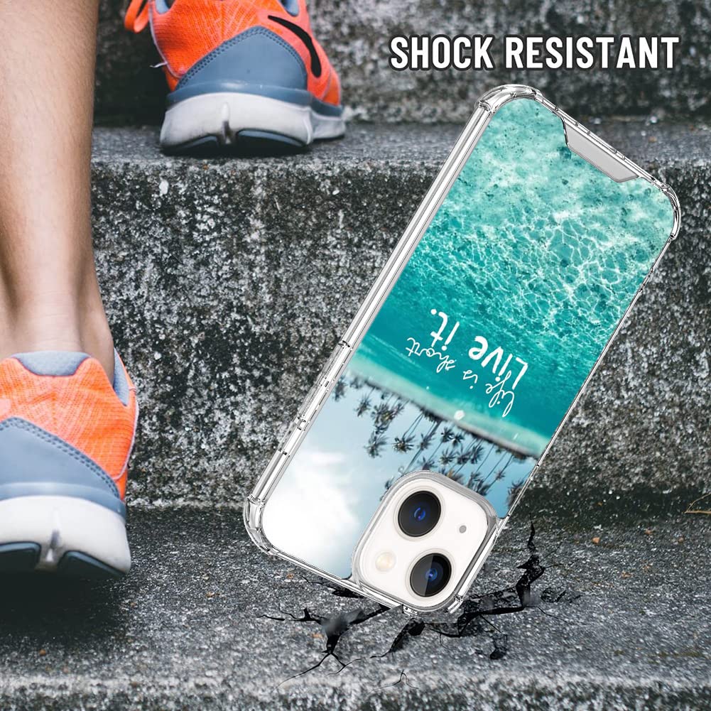 Ook Clear Case For Iphone 13 Case 6.1 Inch 2021, Beach Pattern Shockproof Clear Cover With Screen Protector For Men Women