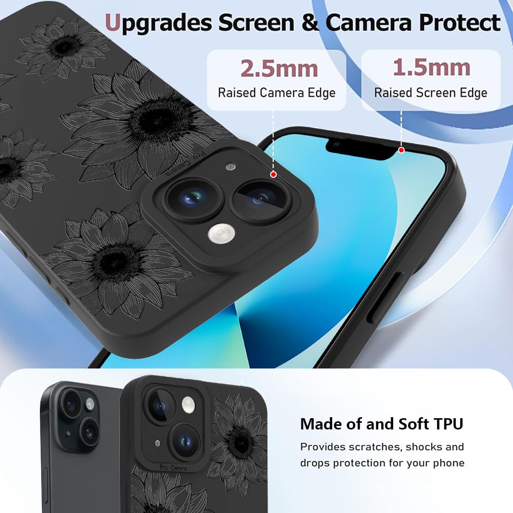 Cute Sunflower For Iphone 13 Phone Cover.The Cute Sunflwer Pattern Shows Your Case More Fashionable And Elegant. Made With A Unique Printing Technique, These Patterns Wont Rub Off Or Fade.Great For Girls And Women?The Case Has 1.6Mm Screen Bezels And 2.5Mm Camera Bezels, These Raised Lips Can Prevent Daily Scratches And Provide Full Body Protection.Our Attractive Floral Pattern Design Phone Casemade Of Flexible Tpu, Thin And Lightweight, Touch Feels Soft, Provides A Smooth And Comfortable Grip Feeling?No Greasy Fingerprints Or Annoying Scratches Left.Precise Cutouts For The Connector Port, Speakers, Camera And All Buttons Are Easy To Access And Do Not Need To Remove The Cover, Support Wireless Charging.