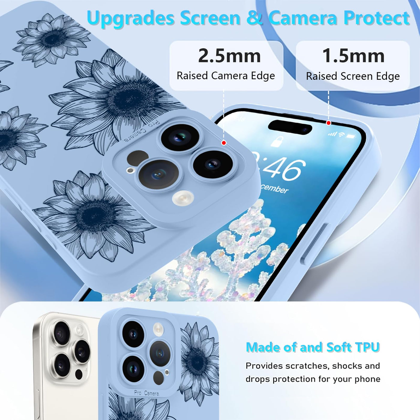 Cute Sunflower For Iphone 14 Pro Phone Cover.The Cute Sunflwer Pattern Shows Your Case More Fashionable And Elegant. Made With A Unique Printing Technique, These Patterns Wont Rub Off Or Fade.Great For Girls And Women?The Case Has 1.6Mm Screen Bezels And 2.5Mm Camera Bezels, These Raised Lips Can Prevent Daily Scratches And Provide Full Body Protection.Our Attractive Floral Pattern Design Phone Casemade Of Flexible And Durable Tpu, Thin And Lightweight, Touch Feels Soft, Provides A Smooth And Comfortable Grip Feeling?No Greasy Fingerprints Or Annoying Scratches Left.Precise Cutouts For The Connector Port, Speakers, Camera And All Buttons Are Easy To Access And Do Not Need To Remove The Cover, Support Wireless Charging.