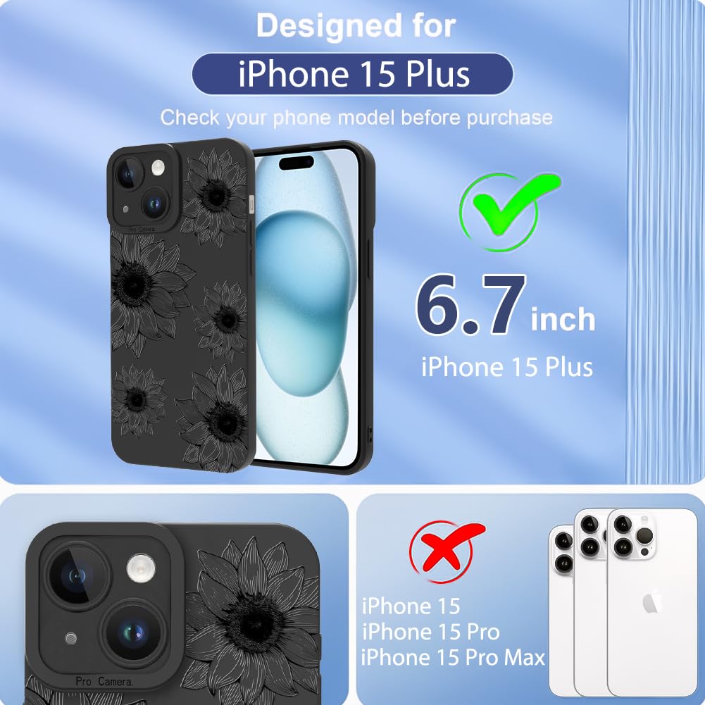 Cute Sunflower For Iphone 15 Plus Phone Cover.The Cute Sunflwer Pattern Shows Your Case More Fashionable And Elegant. Made With A Unique Printing Technique, These Patterns Wont Rub Off Or Fade.Great For Girls And Women?The Case Has 1.6Mm Screen Bezels And 2.5Mm Camera Bezels, These Raised Lips Can Prevent Daily Scratches And Provide Full Body Protection.Our Attractive Floral Pattern Design Phone Casemade Of Flexible Tpu, Thin And Lightweight, Touch Feels Soft, Provides A Smooth And Comfortable Grip Feeling?No Greasy Fingerprints Or Annoying Scratches Left.Precise Cutouts For The Connector Port, Speakers, Camera And All Buttons Are Easy To Access And Do Not Need To Remove The Cover, Support Wireless Charging.