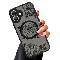 Ook Magnetic For Iphone 16 Case [Compatible With Magsafe] Black Flower Floral Slim Translucent Matte Case For Iphone 16 Case Cam