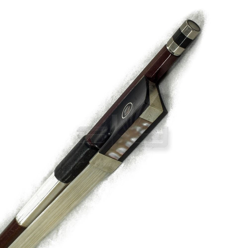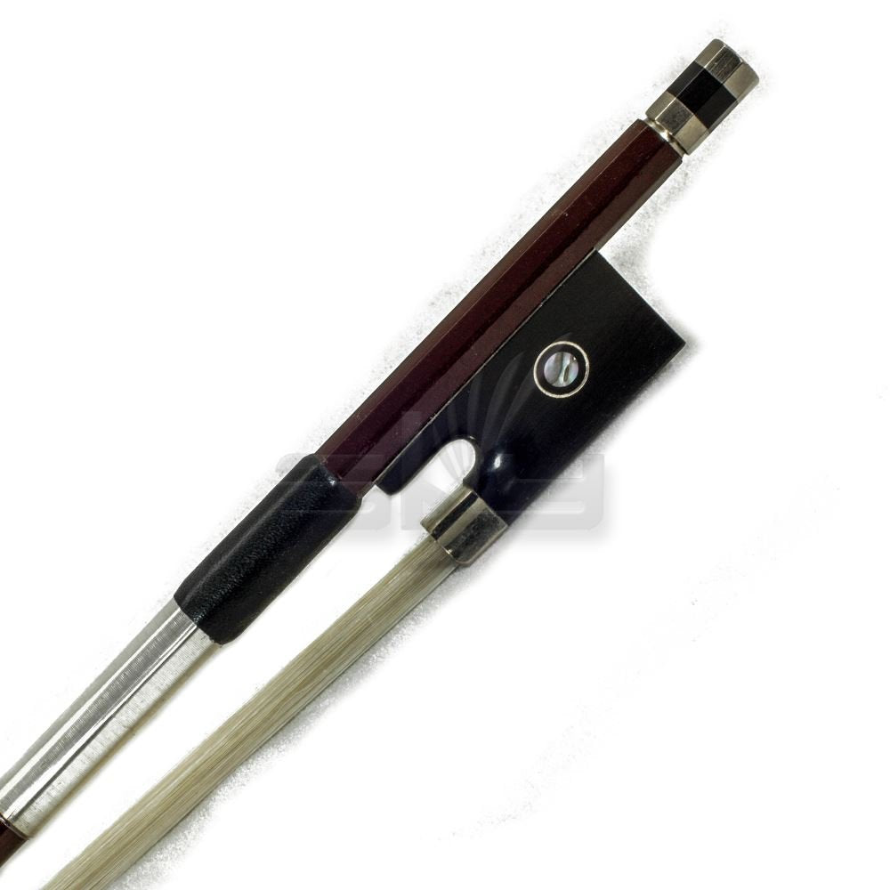 Brand New High Quality Brown Carbon Fiber Violin Bow With Abalone Inlays Hand Carved With High Gloss Finish Round Stick, Ebony Frog With Double Pearl Eye, Genuine Unbleached Mongolian Horsehair Fully Lined, Silver Wrap And Leather Bow Grip Lightweight And Easy To Carry, Very Strong And Stable Good Stiffness, Good Control And Response Bright Sound And Soft On Fingers