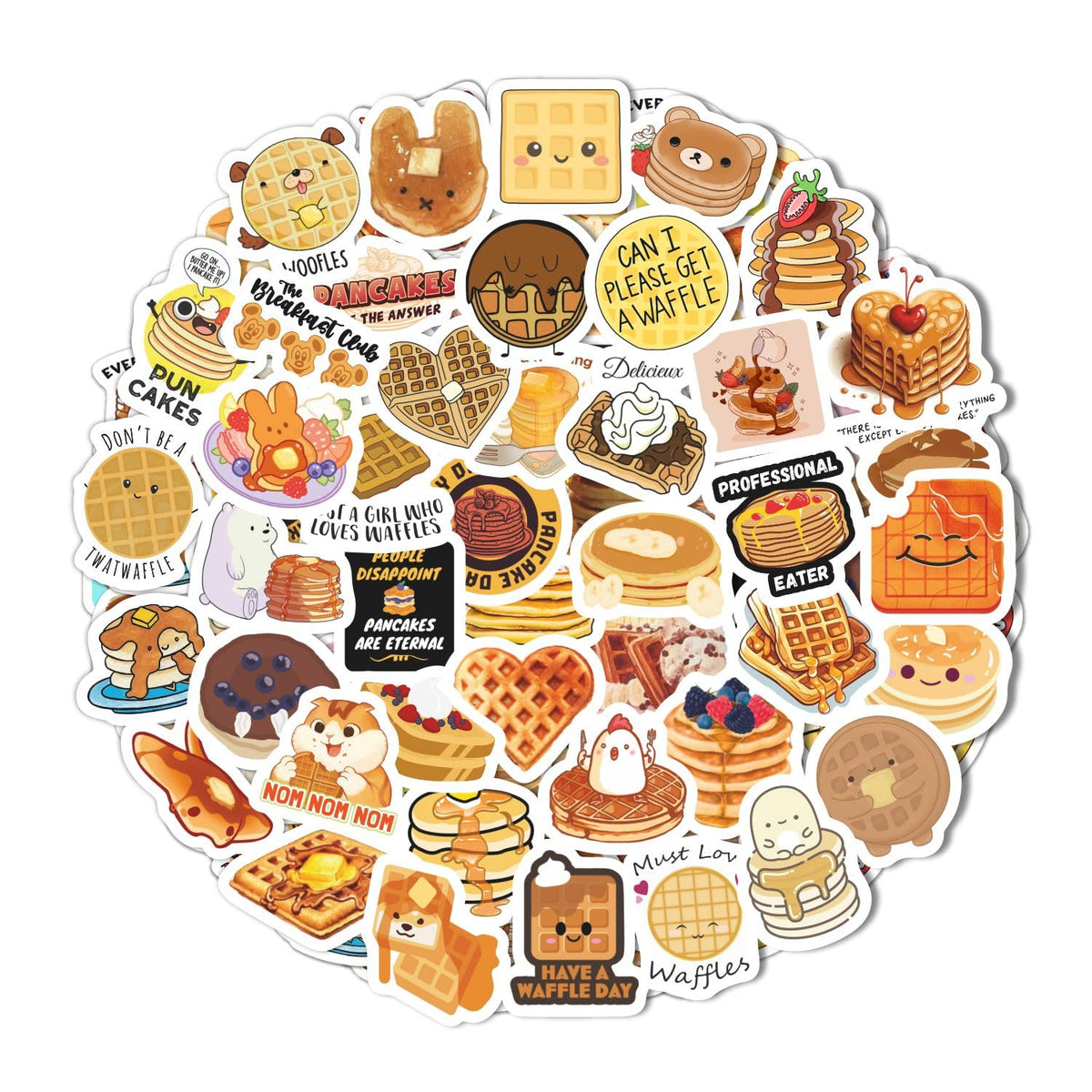 Pancake & Waffle Stickers For Water Bottle And Laptop Breakfast Party Favors & Decorations, Waterproof Vinyl Food Decals, Panc