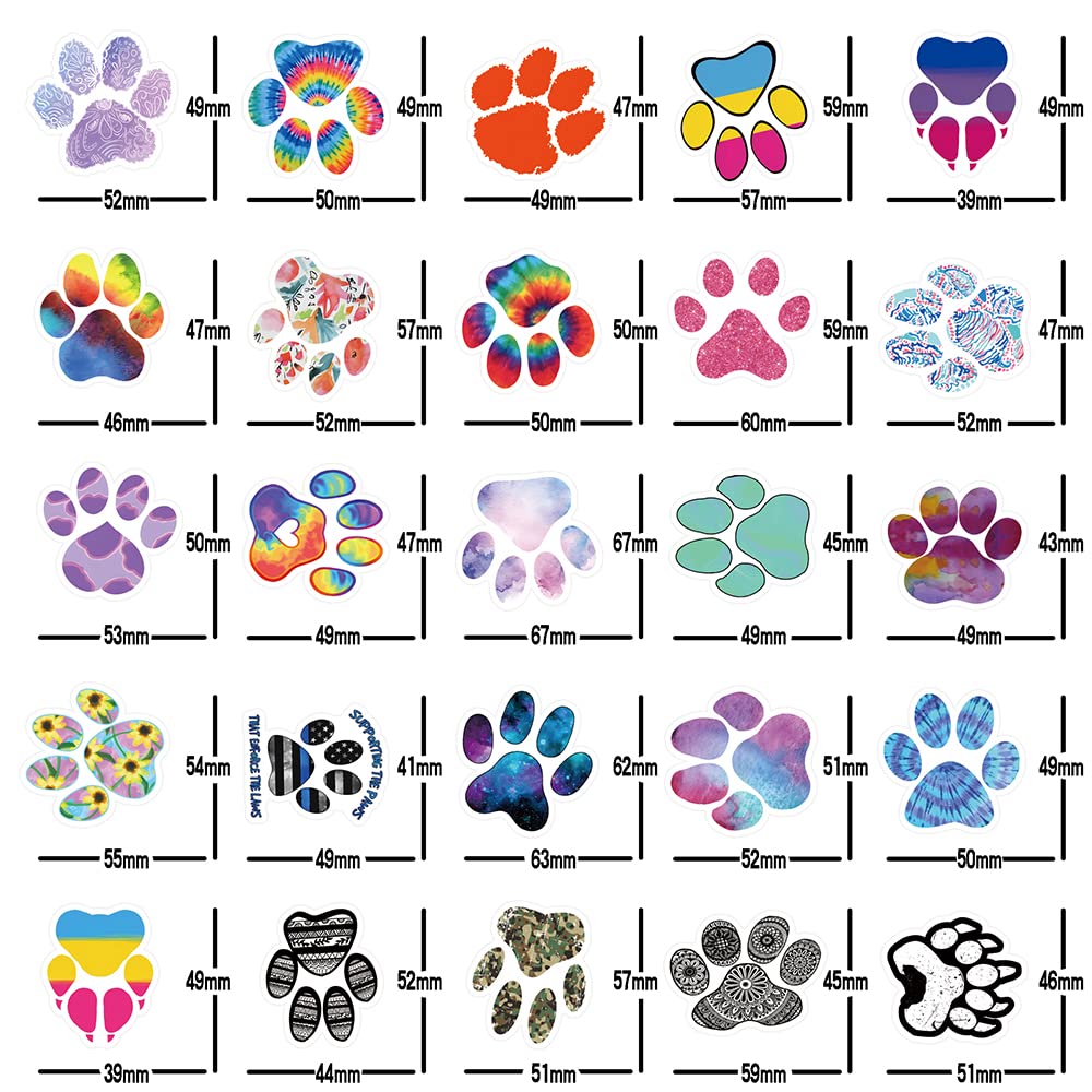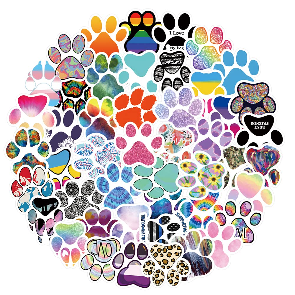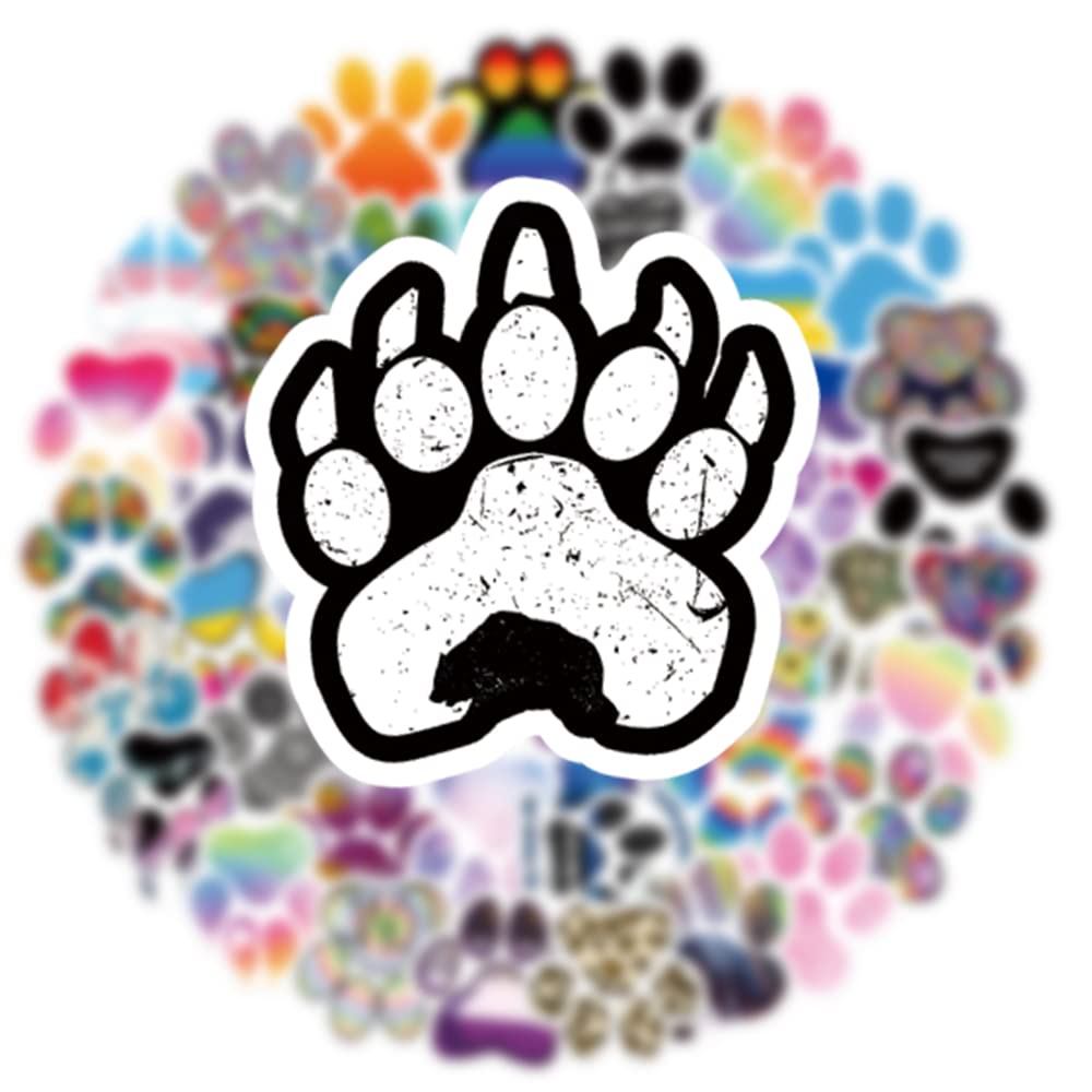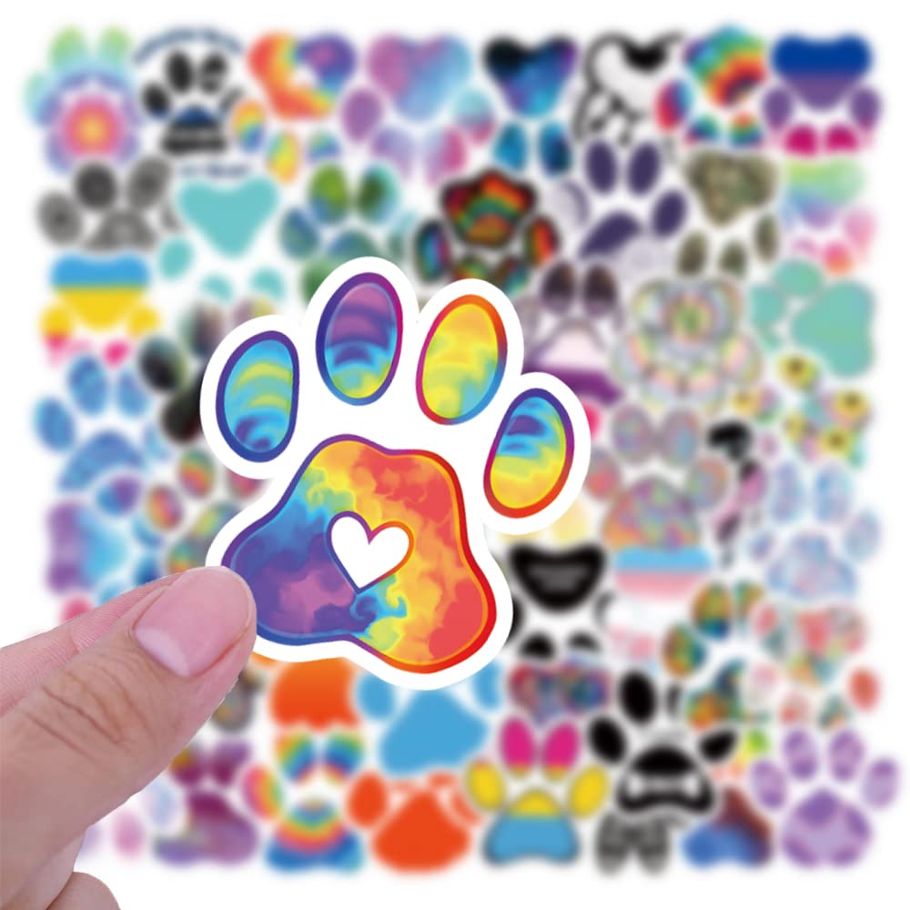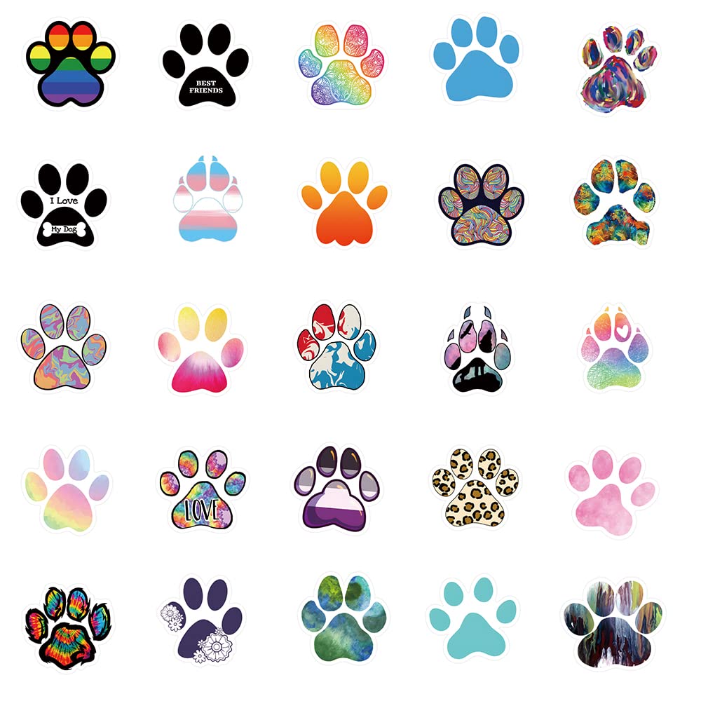 Paw Print Stickers 53Pcs Cute Cartoon Cat Dog Animals Pack | Cool Colorful Deacls Graffiti Vinyl Pvc Waterproof For Water Bottle