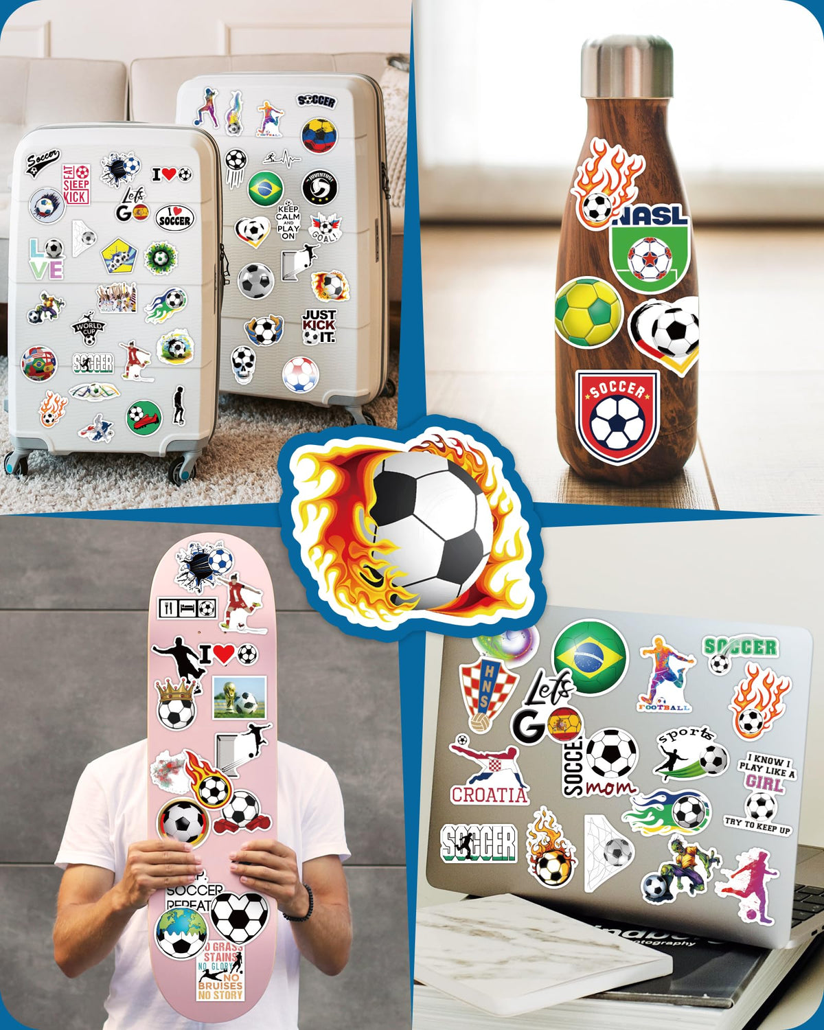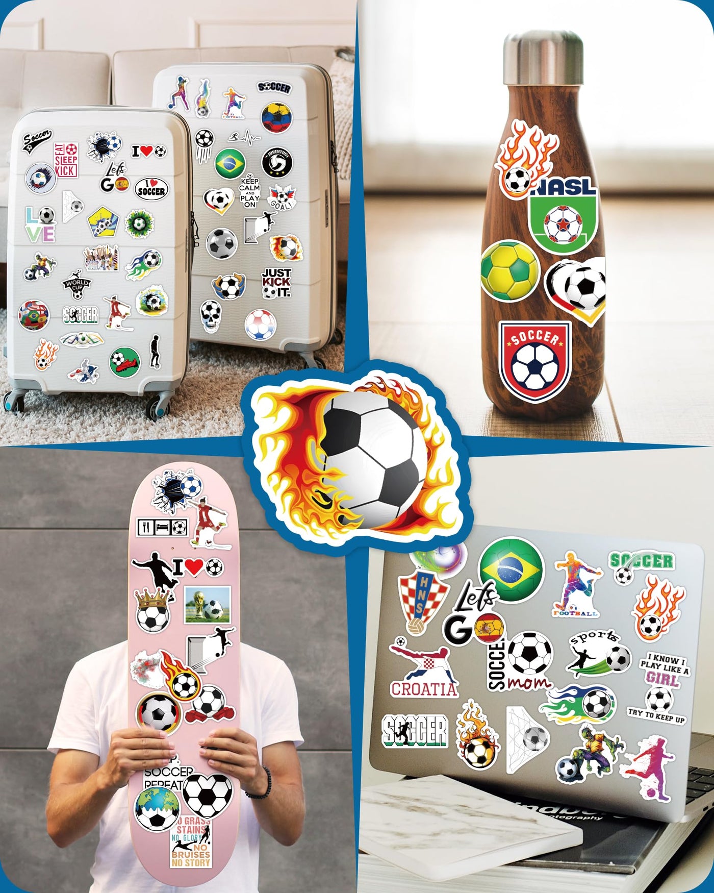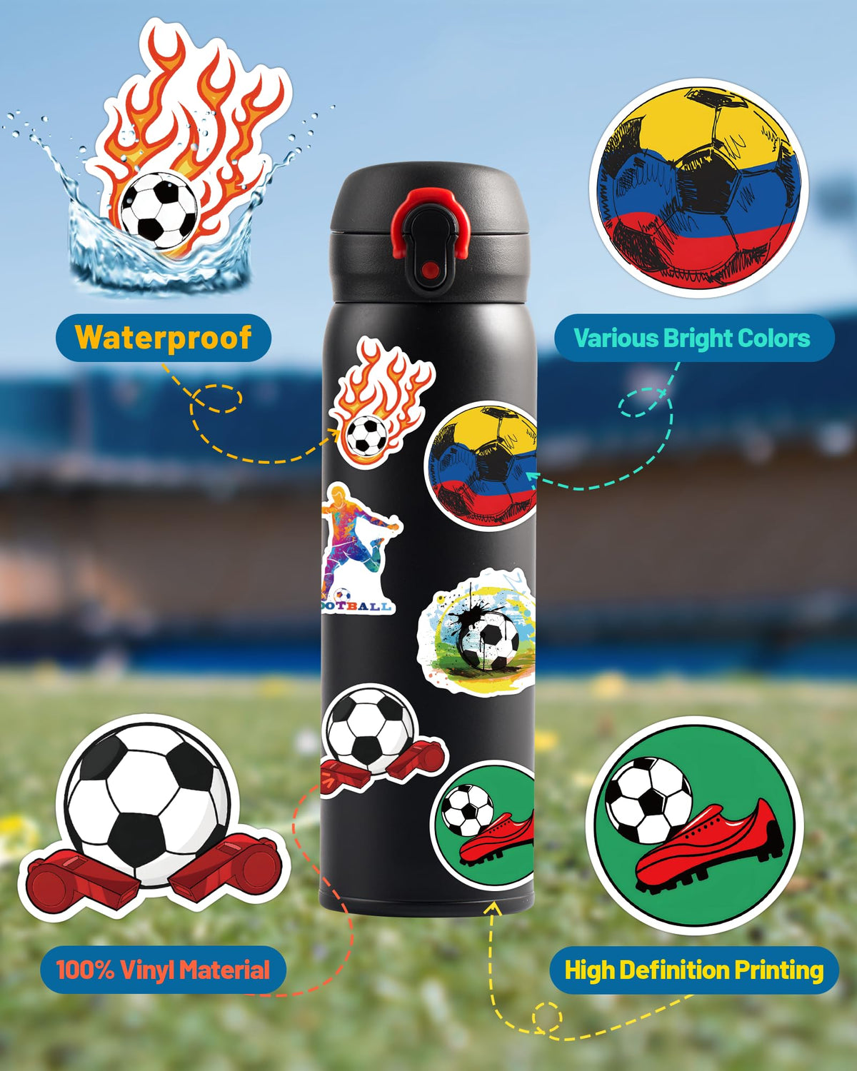Pcnearty 100 Pcs Soccer Stickers For Kids, Water Bottle Stickers, Cute Vinyl Waterproof Hydroflask Phone Skateboard Laptop Stick