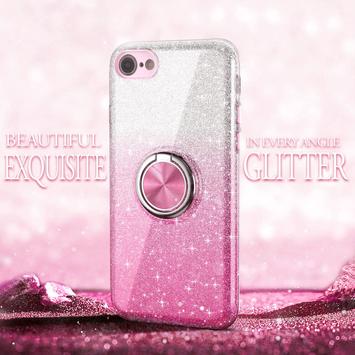 Peetep Iphone Se 3 Case Glitter For Girls, Iphone Se 2020 Case,Iphone 8 Case, Iphone 7 Case,Slim Sparkly Case With 360Aring Holder Kickstand Magnetic Car Mount Shock-Absorbent Durable Cover, Pink Compatibility With: Iphone Se 2020 Iphone Se 3Nd Generation 2022 Iphone 8 47 Inch Iphone 7 47 Inch Fabulous Precision Designed Case For Girls Women If You Like The Feeling Of A Case Free Phone In Your Hand, This Updated Lightweight Case Fits The Bill Its Simple,Thin And Light,Add No Bulky To Your Iphone The Interlayer Glitter Part Is Cute And Pretty , Keeping A Nice Looking For Your Phone,Its Also Fits For Your Clothes Or Handbags ,Beautiful Fingernails Special Features: Tpu + Pc = Dual Layer Protection 1 Updated & Stylish Design 2 360A Rotatable Ring & Flexible Kickstand : It Is Snug Fit With A Built-In 360A Rotatable Ring Holder, Provide You A Safe And Sound Non-Slip Grip 3 Screen & Camera Protection: Use This Iphone Case To Protect Your Screen And Camera 20Mm Raised Bezel For Screen And Lens Will Protect Your Screen And Camera From Scratching When Placed Down 4 Durable & Protective :There Is A Decent Amount Of Lip Protection And The Camera Is Nestled In A Little Snug Fit To Stop Debris And Lens Scratching 5 Precise Cutouts: Easy Access To All Buttons And Ports And It Was Easy To Put On Your Phone, Raised Lip Comes Over The Screen And Camera That Provides Anti-Scratch Protection 6With Fine Workmanship And Premium Material, This Case Is Durable Enough For Longtime Usage Updated & Stylish Design Package Included:: 1 X Case For Iphone Se 2020Iphone Se 3Nd Generationiphone 8Iphone 7 47 Inch