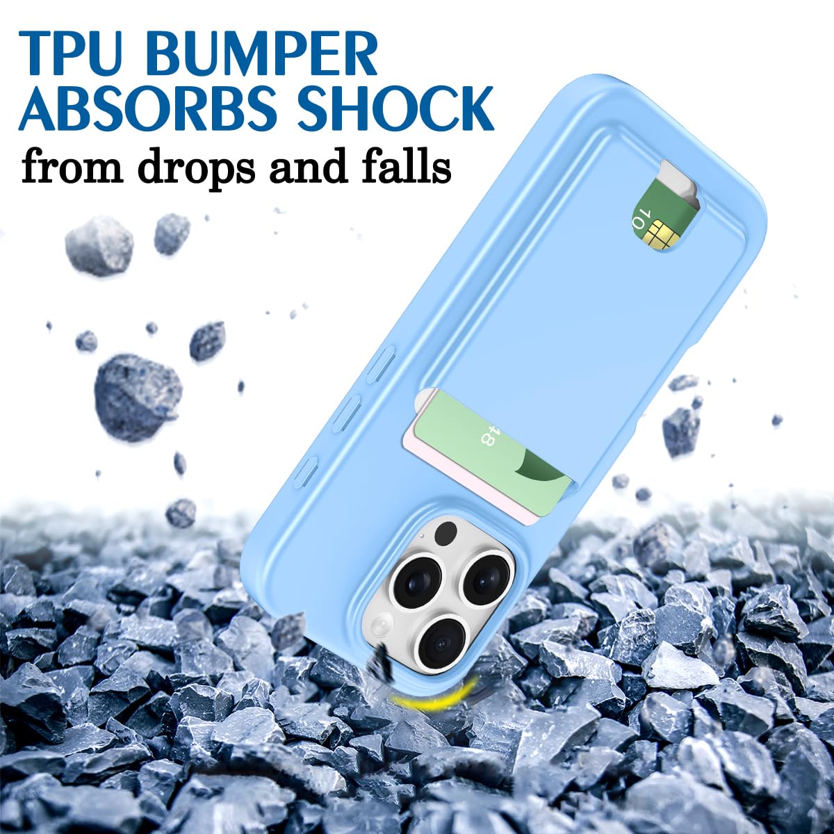 Petocase For Iphone 16 Pro Max Wallet Case Card Holder Slot Ultra Slim Fit Flexible Tpu Gel Rubber Soft Skin Silicone Protective Phone Case Cover For Apple Iphone 16 Pro Max 6.9 Inch Light Blue