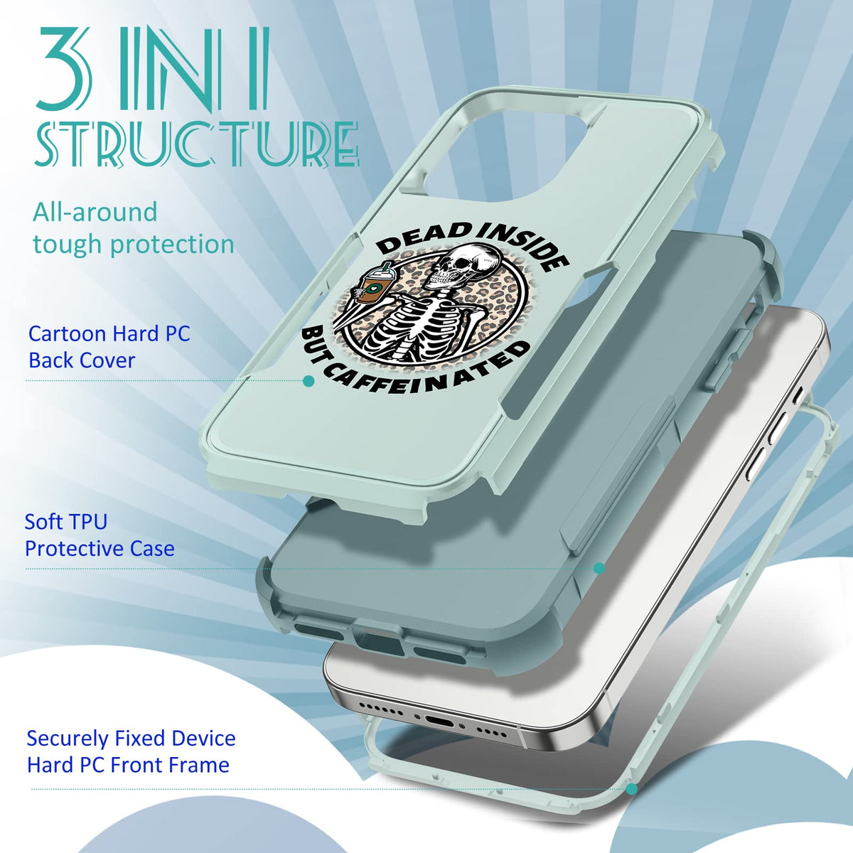 Plakill For Iphone 13 Pro Max Heavy Duty Case Protective Funny Skull Skeleton Designer Drop Tested Cute Cases For Men Women Girl