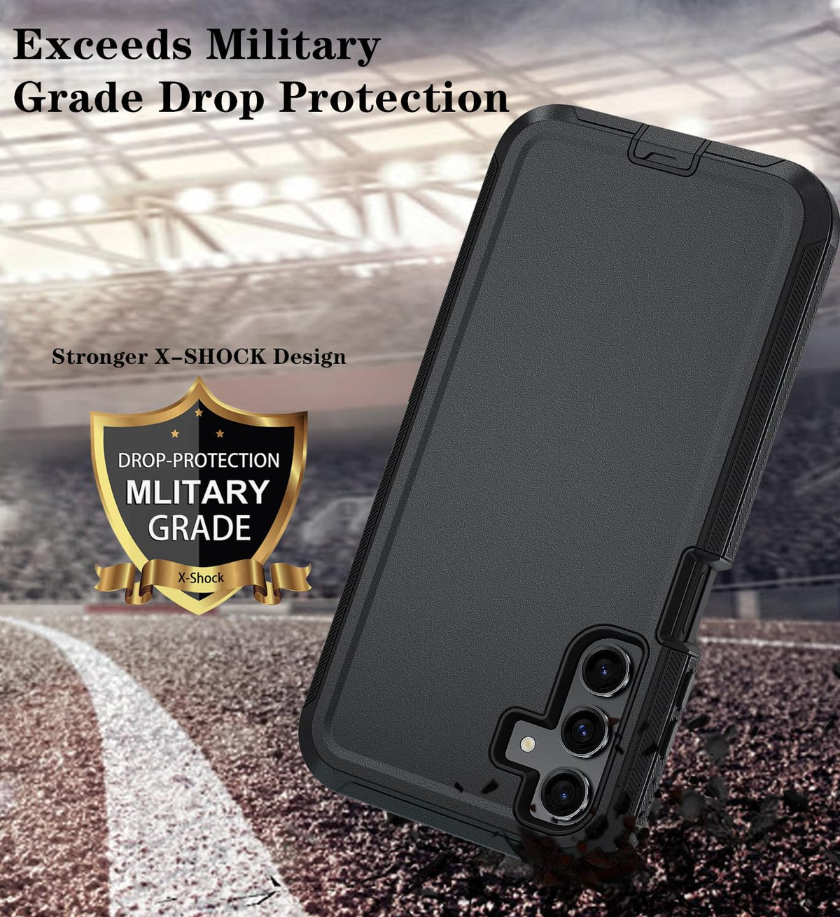Q: What level of protection does this phone case provide?A: This phone case features a 3-layer heavy-duty design that offers excellent protection against drops, shocks, scratches, and dust. Its durable TPU back and hard PC frame ensure that your phone remains safe from everyday wear and tear.