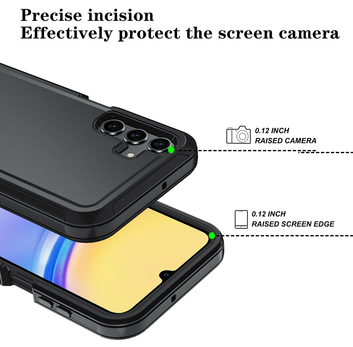 Qinmay Phone Case For Samsung Galaxy A15 5G Case With Hd Screen Protector, Heavy Duty Shockproof & Dropproof 3-Layer Cover Phone Case For Galaxy A15