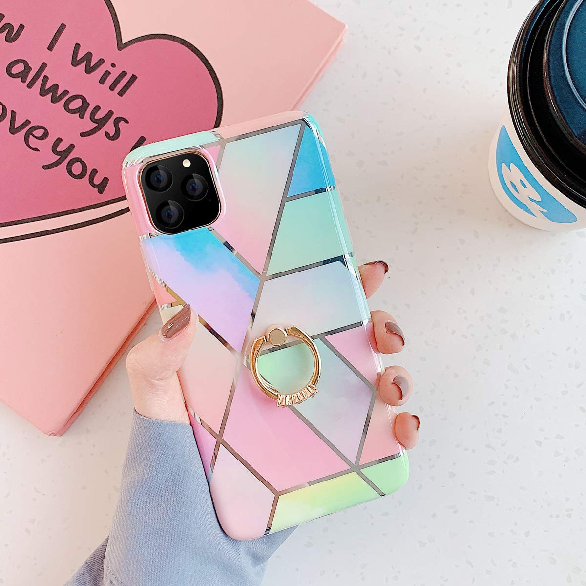 Qokey Compatible With Iphone 11 Case,Marble Case Cute Fashion Design For Men Women Girls With 360 Degree Rotating Ring Kickstand Soft Tpu Shockproof Cover Designed For Iphone 11 61 Inch Colorful
