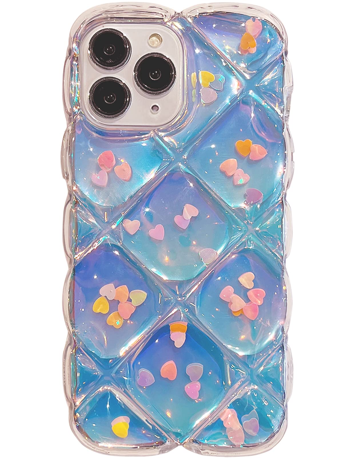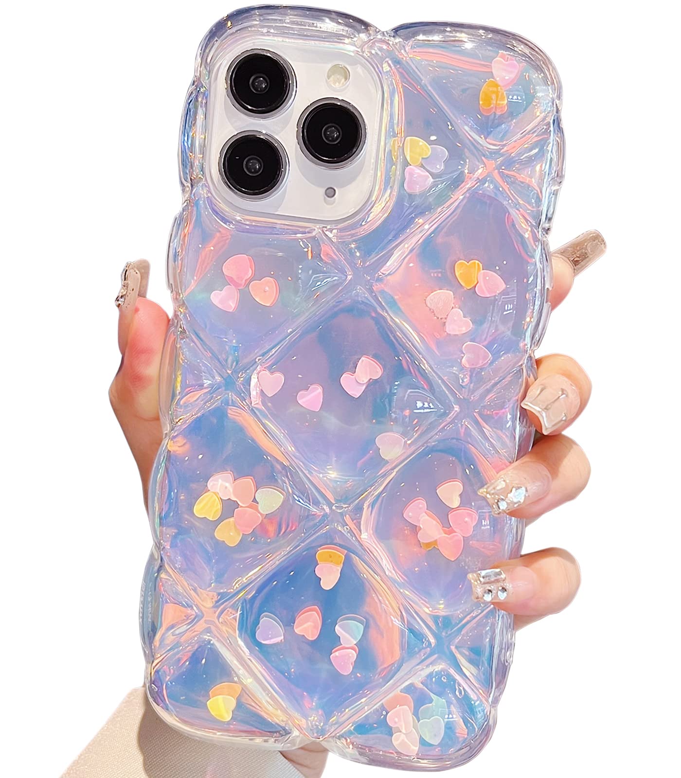 Qokey For Iphone 11 Pro Max Case 65 Inch,Cute Laser Gradual Bling Love Heart Glitter Clear+Translucent Card Soft Wave Frame Anti-Falling 3D Thick Shockproof Phone Cover For Women(For 11 Pro Max 65)