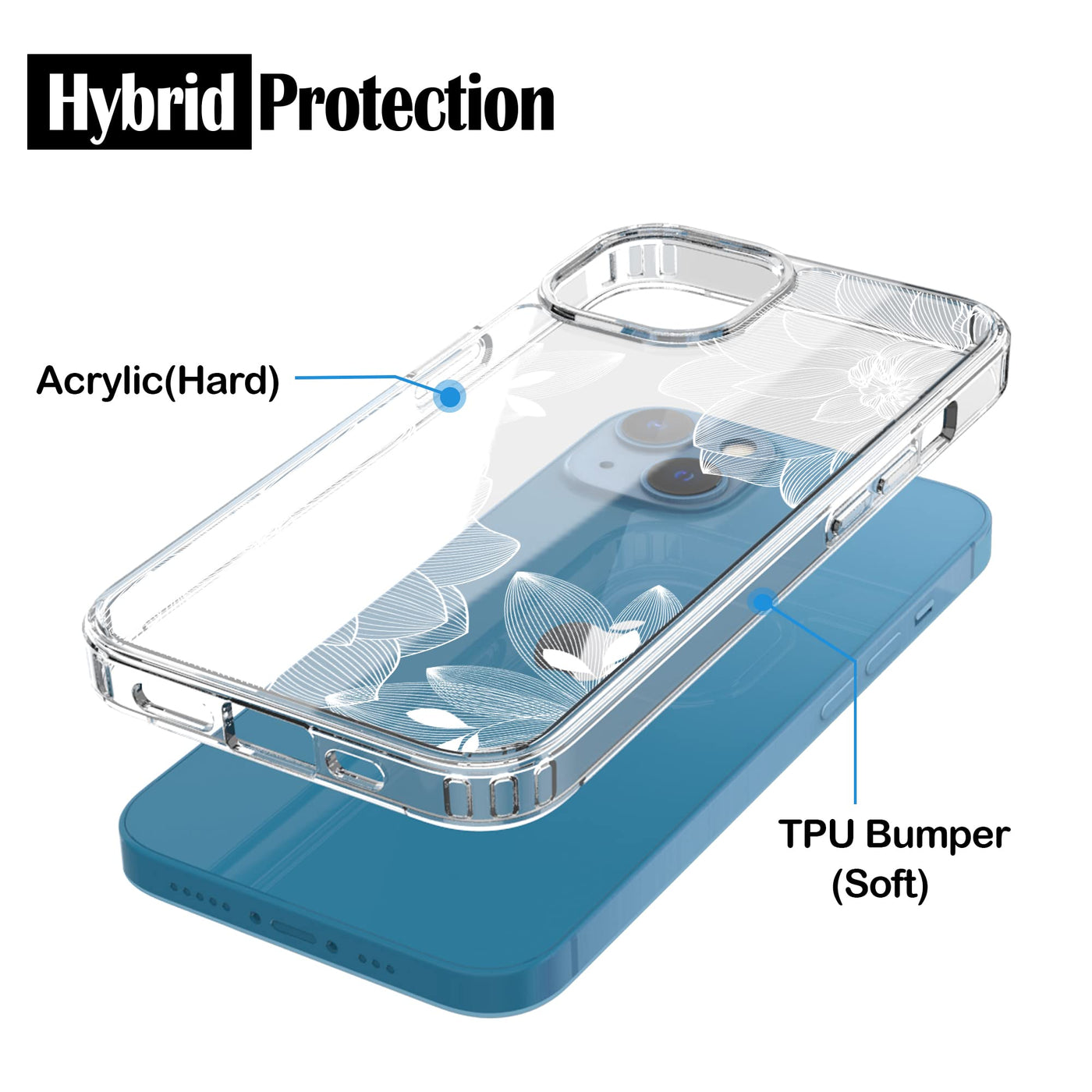 Compatible With Iphone 13 Only Lightweight Slim Case With Soft Tpu Side And Crystal Clear Acrylic Hard Back Panel Raised Lip Edges For Protecting Screen During Dropping, Phone Can Be Placed Face Down Without Scratching The Screen Compared To Silicone Skins, This Tpu Skin Is Stiffer To The Touch, But Remains Flexible Shock Absorbent, Shatterproof, And Anti-Scratch Material Specifically Designed For Your Phone Sleek, Fits Like A Glove Precise Cutouts For Camera Lens, Speaker, Charging Port And Audio Port Full Button Protection And Easily Accessible One Piece Design Make It Hybrid Design, Offers Superior Protection For Your Device From Everyday Shock, Impact, And Scratches