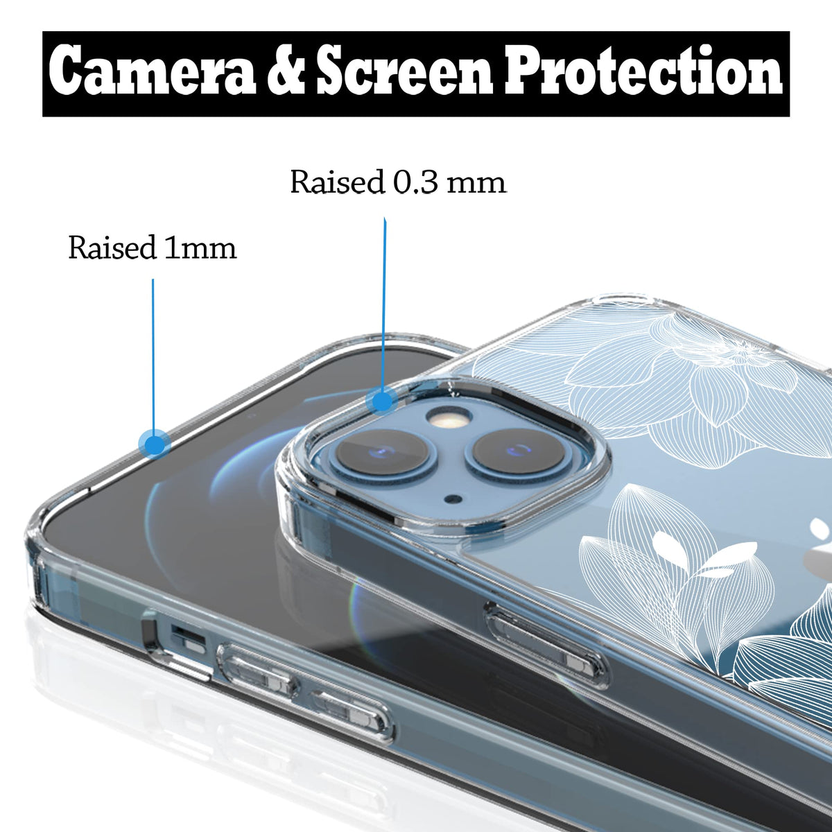 Q: How does the RANZ case protect my iPhone 13 from damage?A: This case provides superior protection from everyday shocks, impacts, and scratches due to its hybrid design that includes raised lip edges to protect the screen when placed face down.