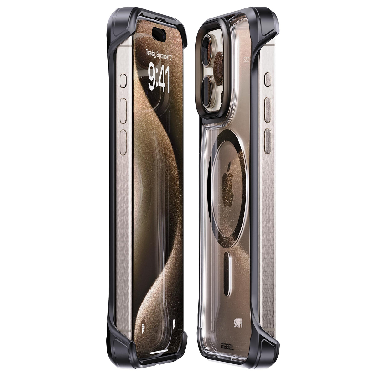 Rebel Iphone 15 Pro Max Clear Case [Crystal Flex Series] Exposed Sides For Comfort, Strong Magsafe Compatible, Glossy Grip, Prot