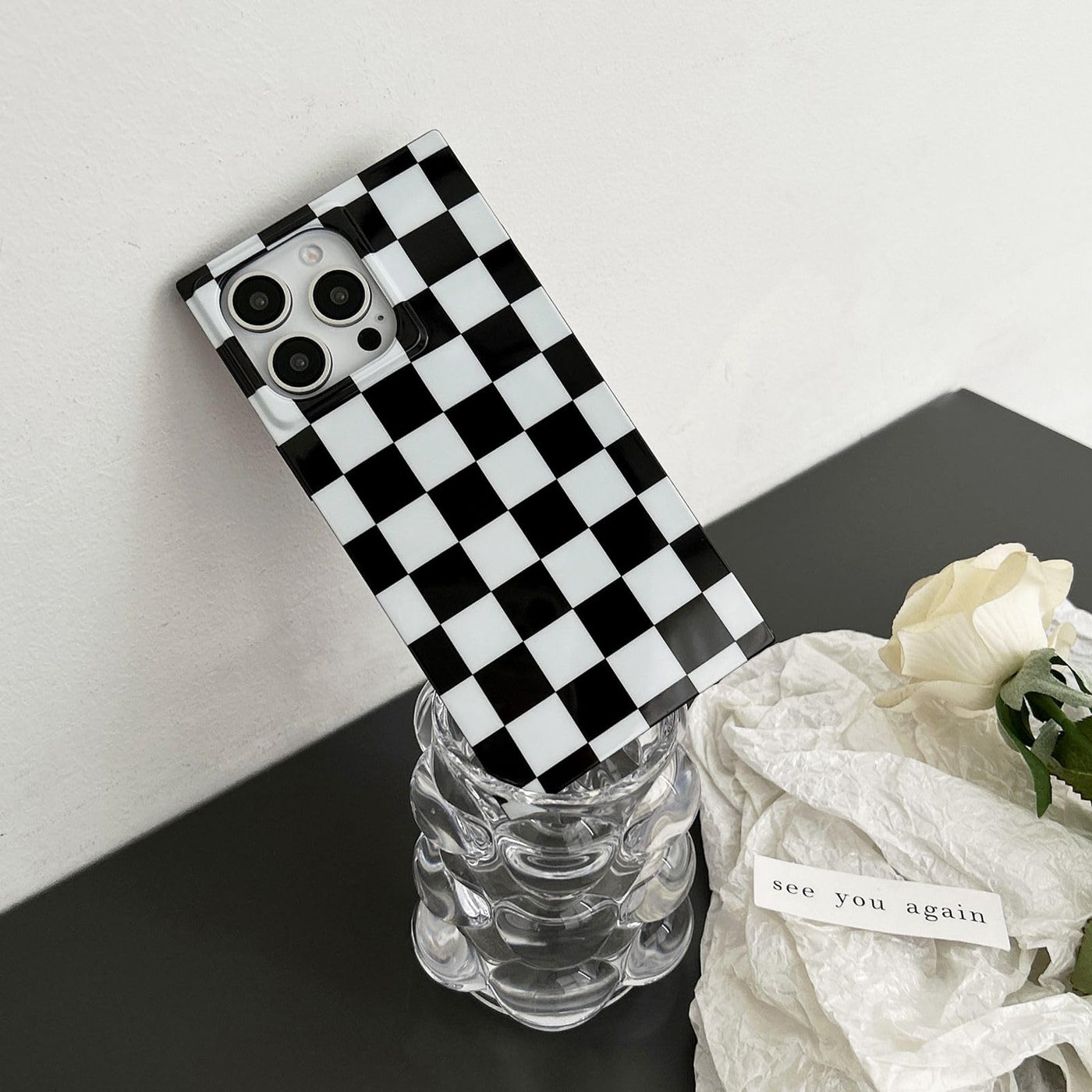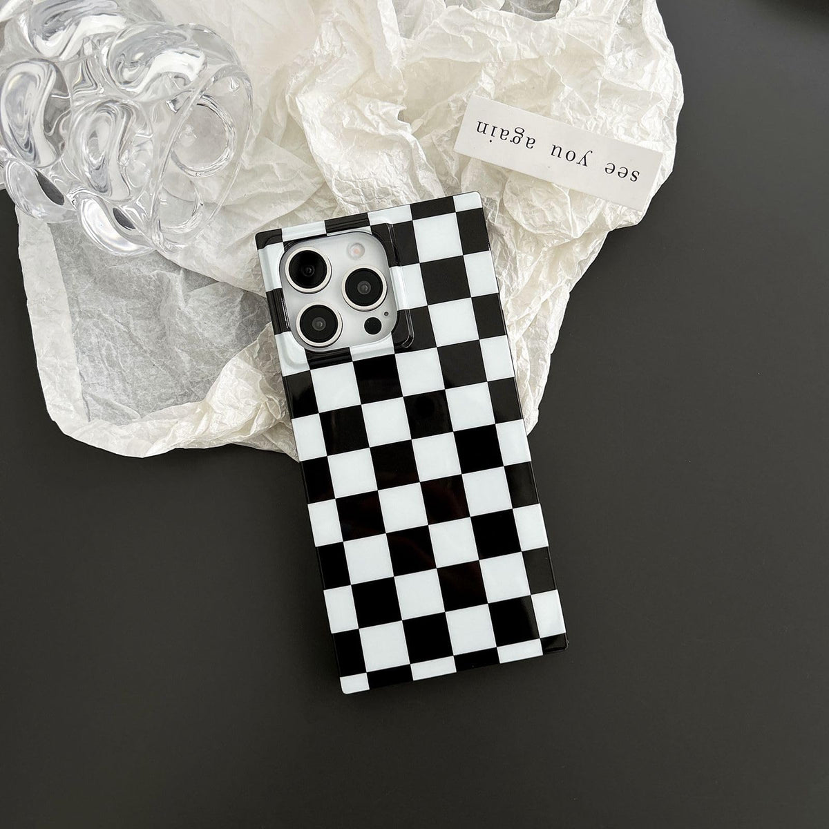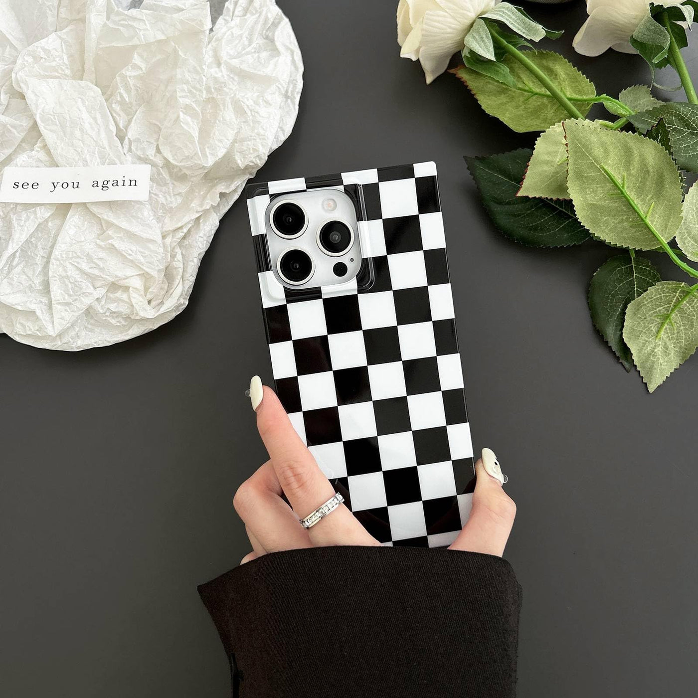 Rectangle Checkered Phone Case For Iphone 14 Pro 2022 Black White Grids Plaid Checkerboard Slim Soft Classic Trunk Design Strong