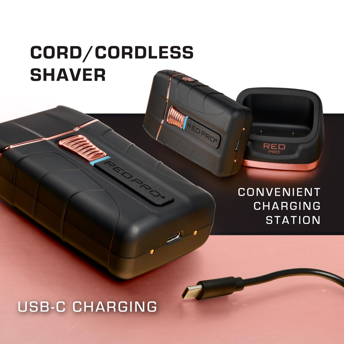 The Red Pro Cordless Shaver Is An Ideal Solution For Efficient, Convenient Grooming. It Features A Durable Dlc Black Titanium Coated Foil, Uniform Cutting Speed, And An Efficient Fast Rotary Motor For Precise Shaves. Its Ultra Quiet Operation And Usb-C Fast Charging Make It Perfect For Everyday Use Or Travel. Available In Black And Gold. It'S The Perfect Shaver For Men, Travelers, And Busy Professionals.
