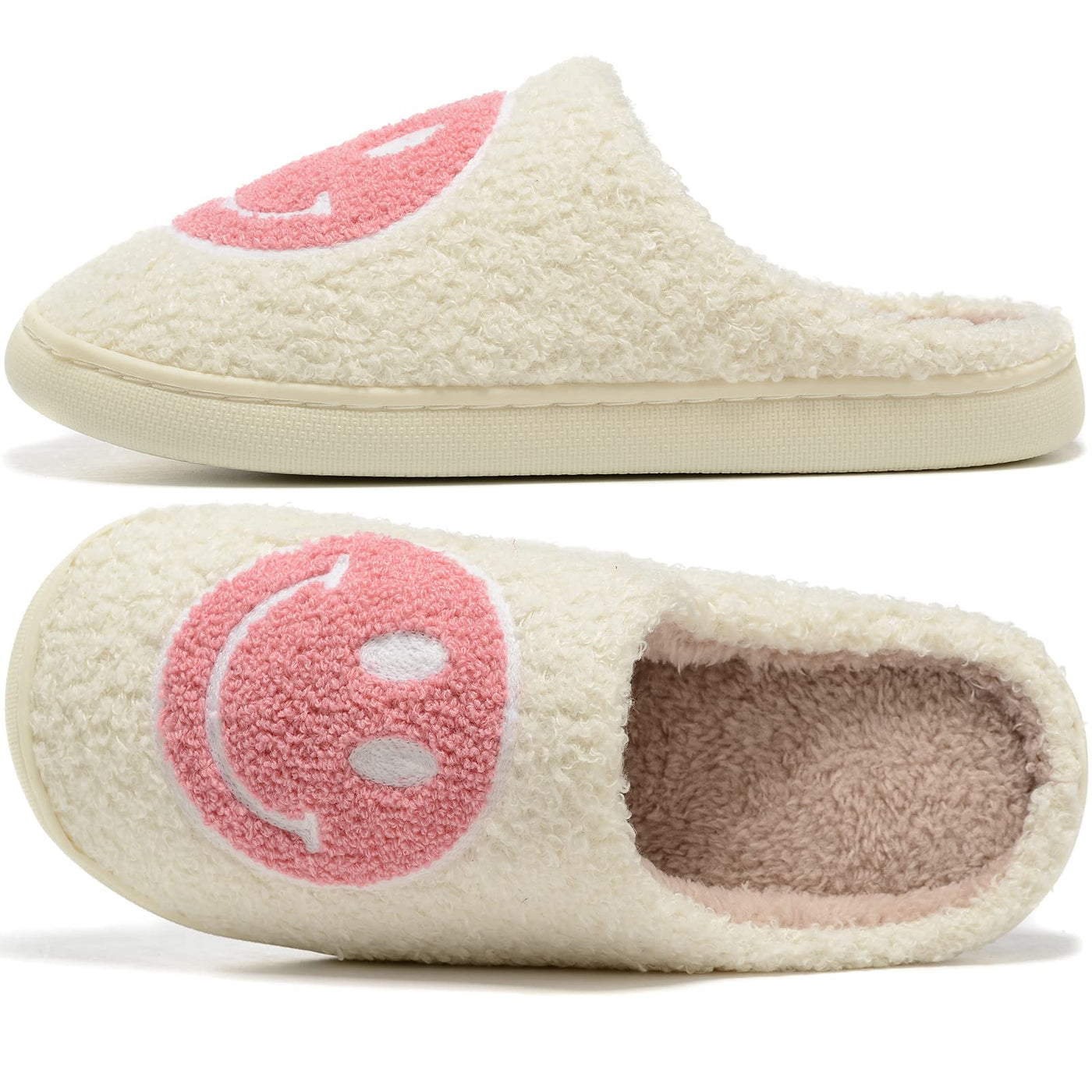 Retro Fuzzy Face Slippers For Women Men, Retro Soft Fluffy Warm Home Non Slip Couple Style Casual Smiley Face Slippers Indoor Ou