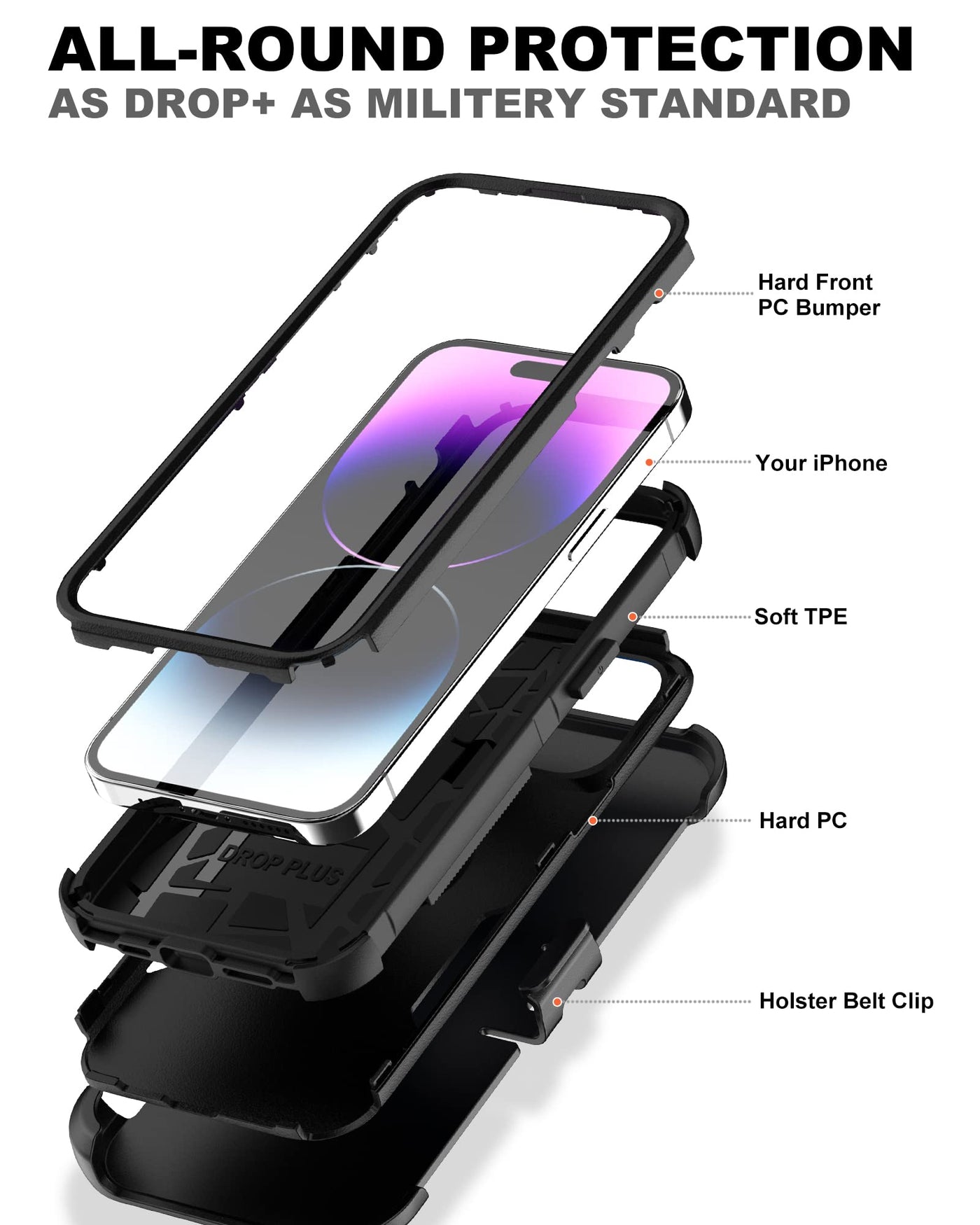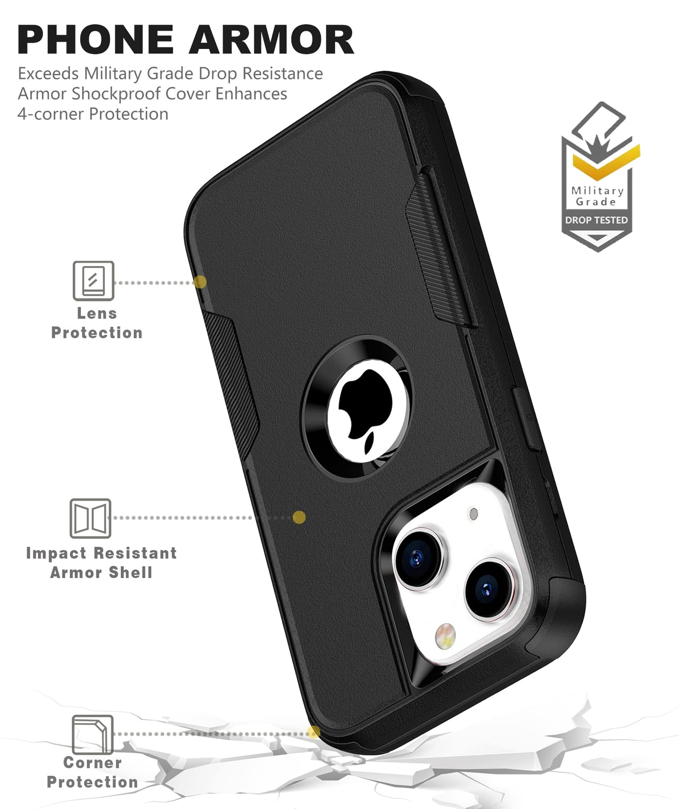 Ronshieh Defender Case For Iphone 14 With Holster Belt Clip: [2Pcs Screen Protectors + Camera Lens Protector] Heavy Duty Protect