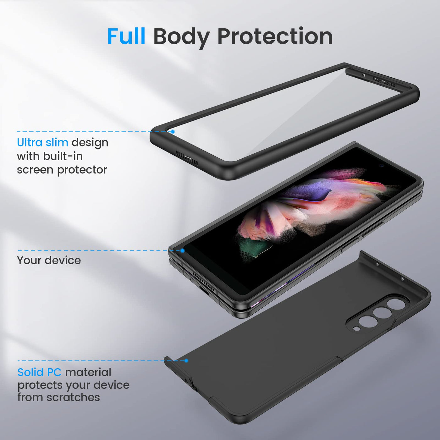 Ruky For Galaxy Z Fold 3 Full Body Case, Built In Screen Protector, Hard Pc Ultra Thin Anti Scratches Shockproof Protective Phon