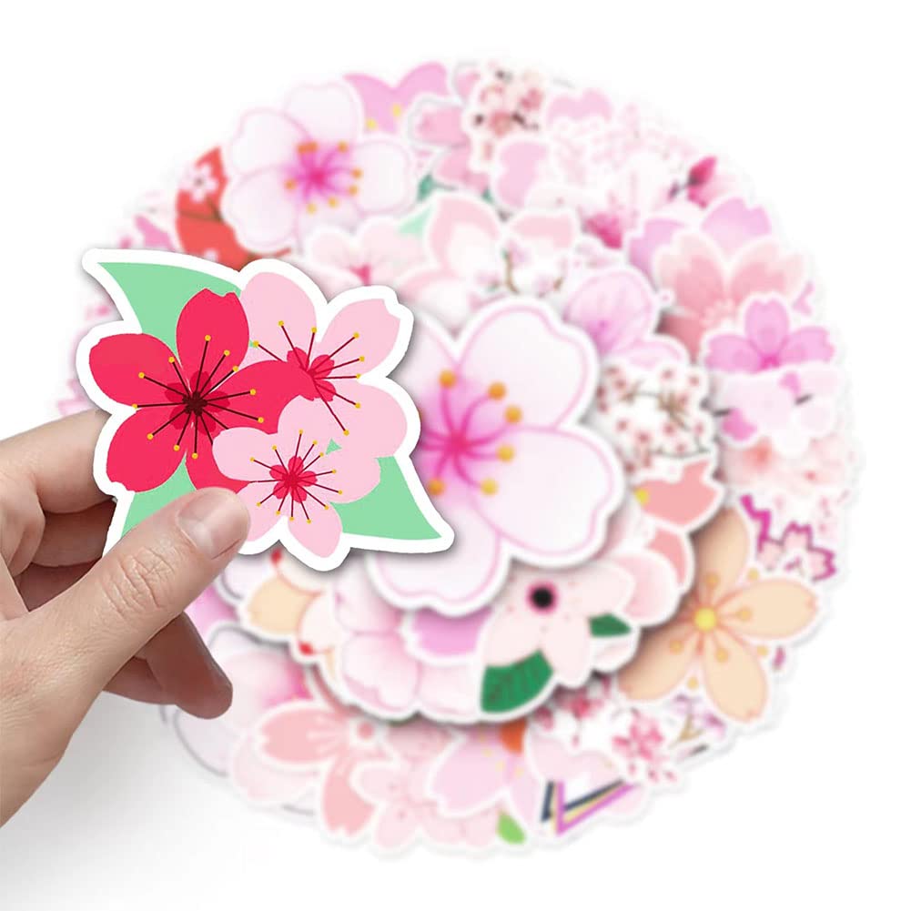 Sakura Stickers |50Pcs Oriental Cherry Waterproof Vinyl Decals For Bike Water Bottles Laptop Bicycle Refrigerator Cup Luggage Co