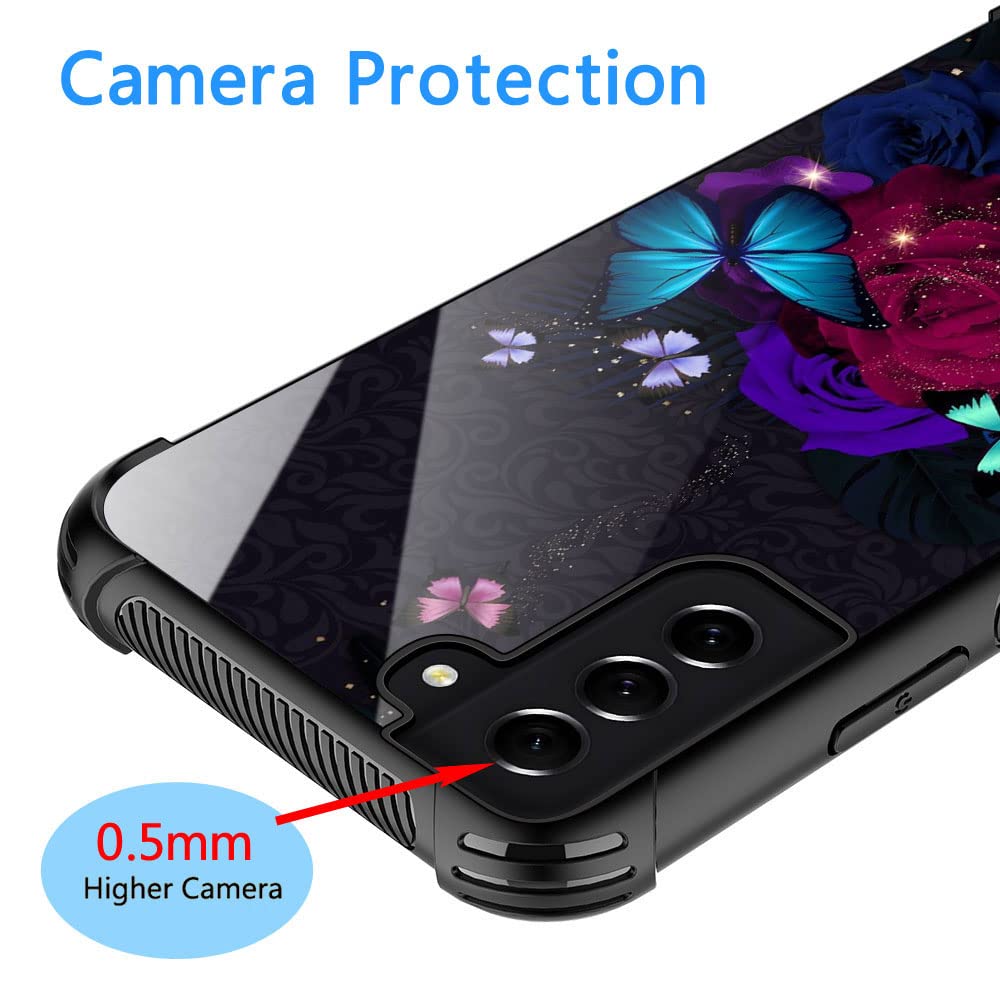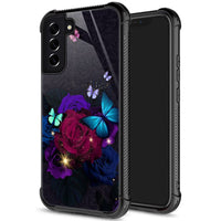 Samsung Galaxy S21 Case,Blue Butterfly And Red Roses Galaxy S21 5G Cases For Girls,Pattern Design Shockproof Anti Scratch Organi