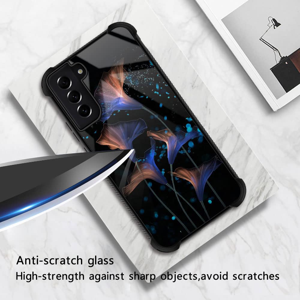 Samsung Galaxy S21 Case,Blue Flower Galaxy S21 5G Cases For Girls Womens,Pattern Design Shockproof Anti Scratch Organic Glass Ca
