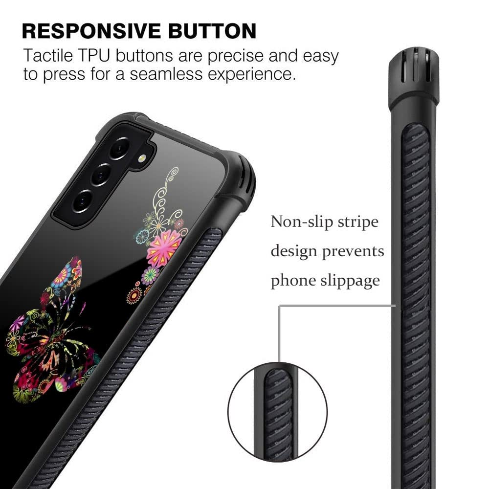 Samsung Galaxy S21 Case,Butterfly Flower Galaxy S21 5G Cases For Girls Womens,Pattern Design Shockproof Anti Scratch Organic Gla