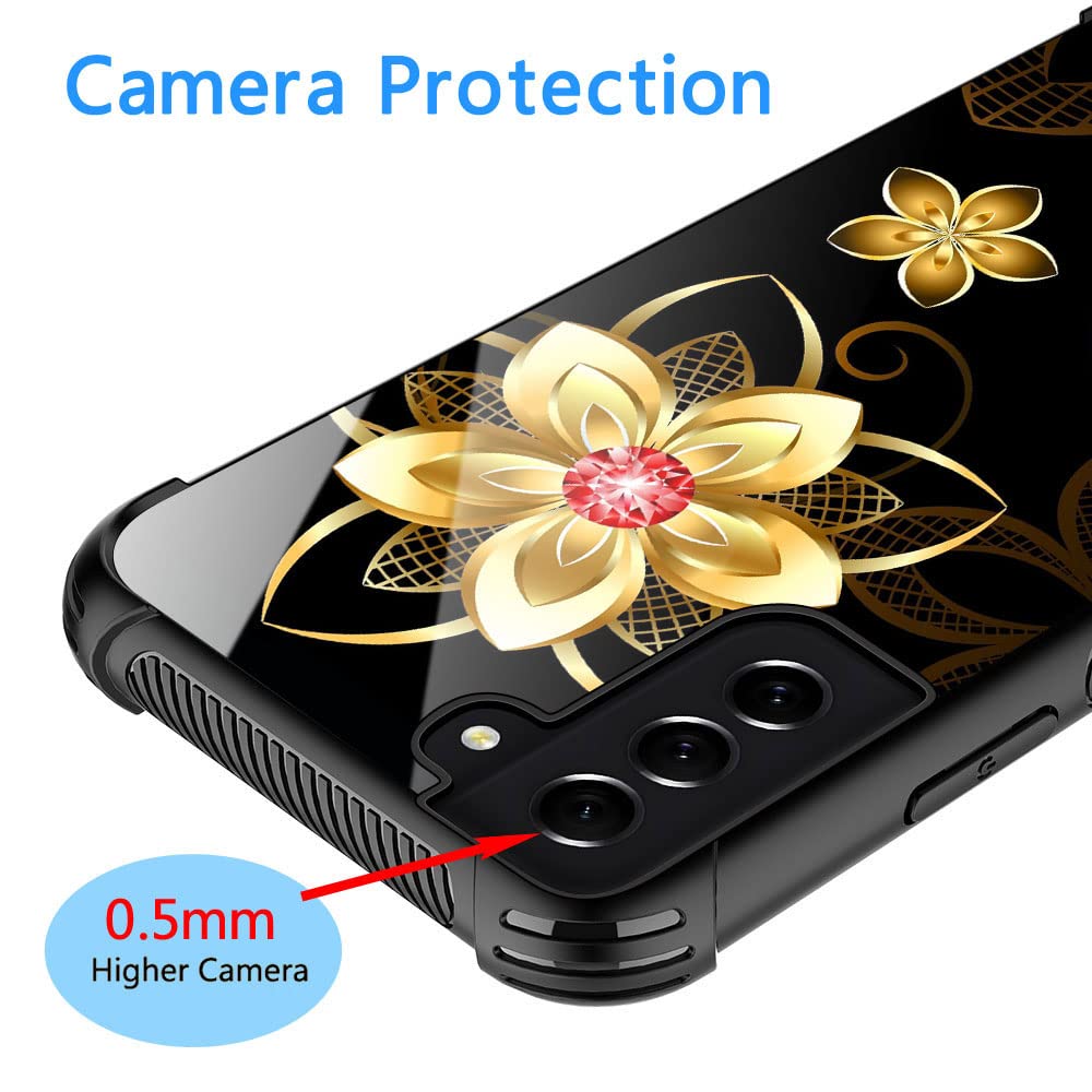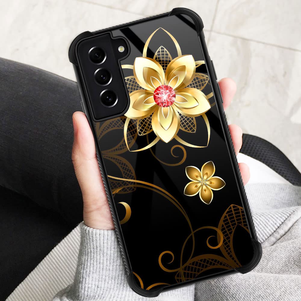 Samsung Galaxy S21 Case,The Golden Flower 2 Galaxy S21 5G Cases For Girls,Pattern Design Shockproof Anti Scratch Organic Glass C