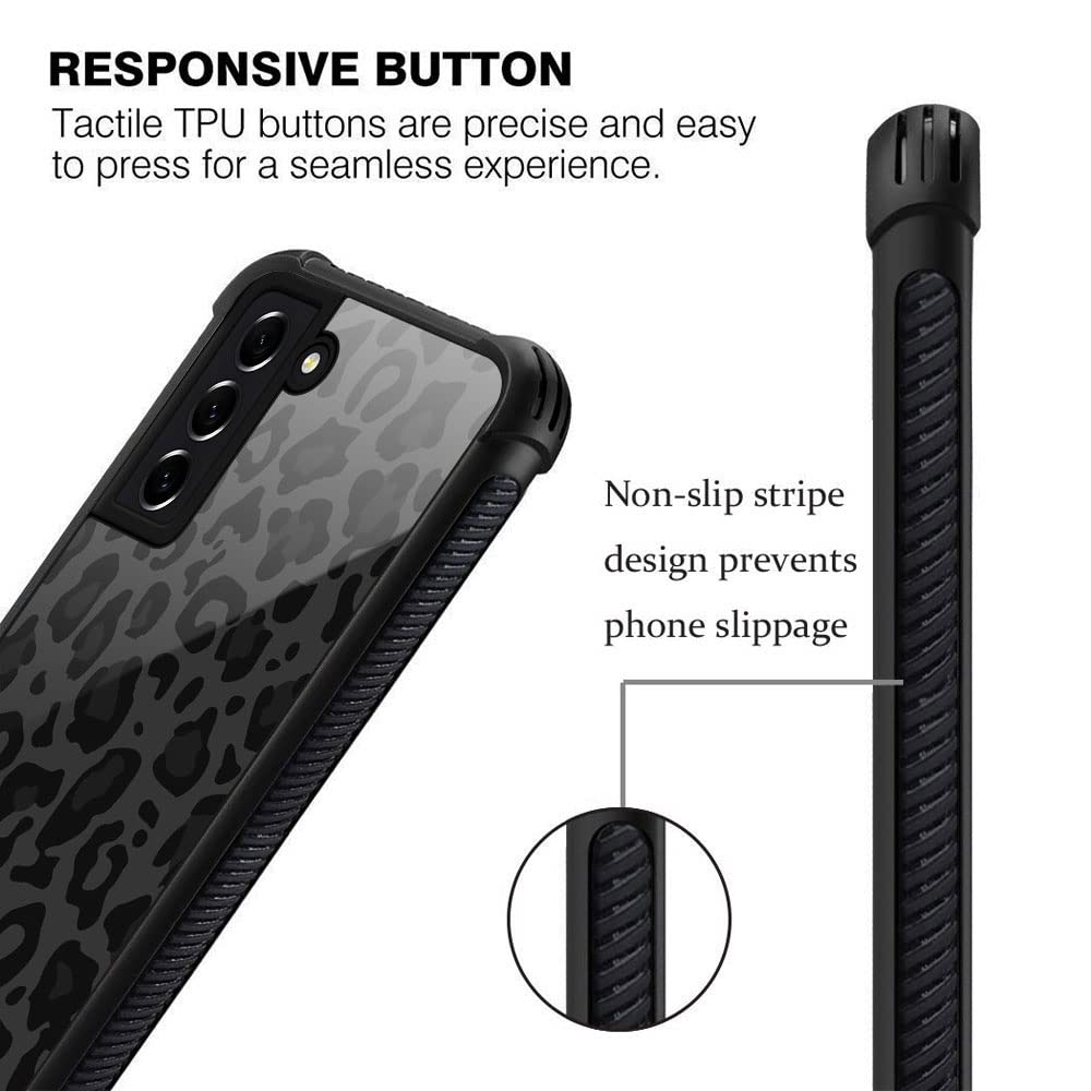 Samsung Galaxy S21 Fe Case,Black And Grey Leopard Galaxy S21 Fe Cases For Girls Womens,Pattern Design Shockproof Anti Scratch Or