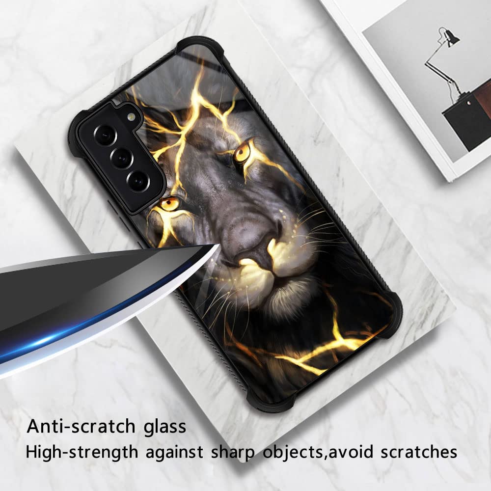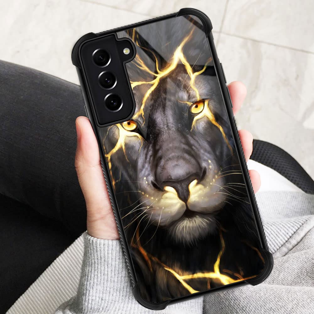 Samsung Galaxy S21 Fe Case,Magma_Lion Galaxy S21 Fe Case For Boys And Men,Pattern Design Shockproof Anti Scratch Organic Glass C