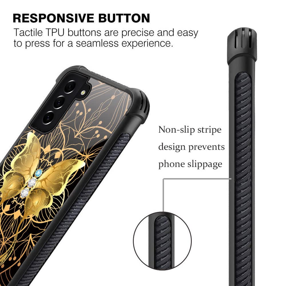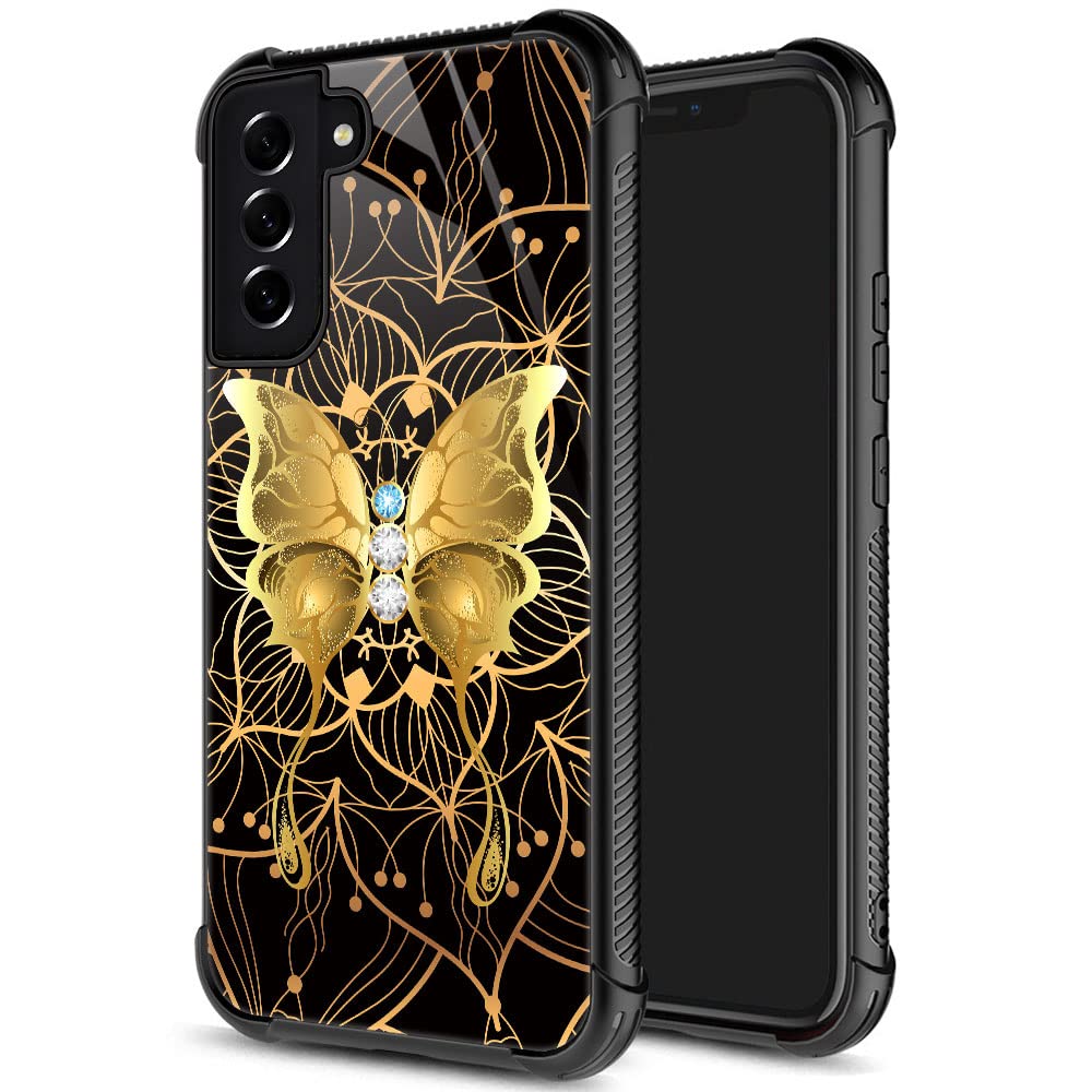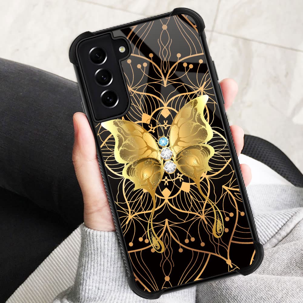 Samsung Galaxy S21 Fe Case,N Golden Diamond Butterfly Galaxy S21 Fe 5G Cases For Girls,Pattern Design Shockproof Anti Scratch Or