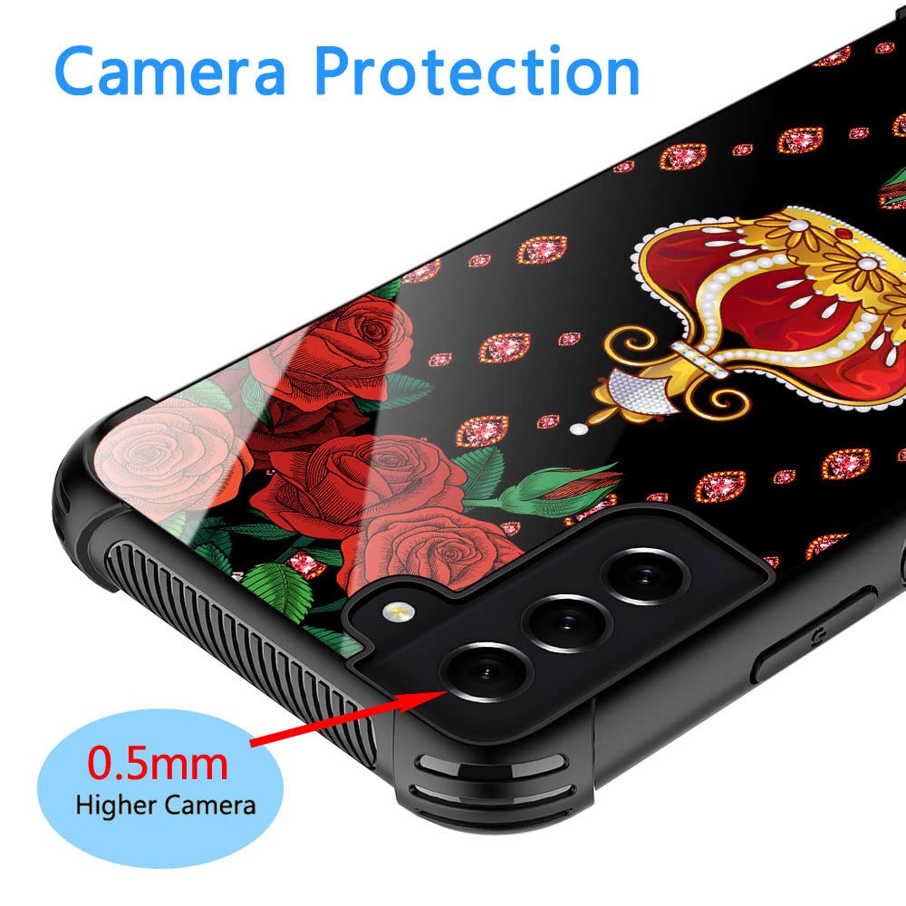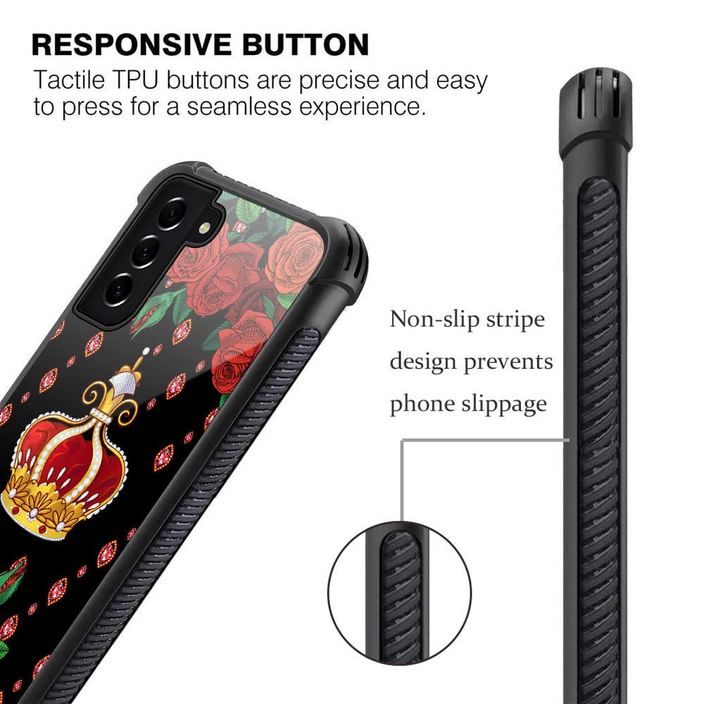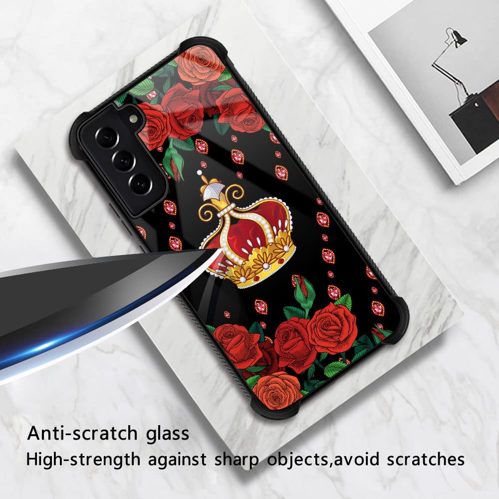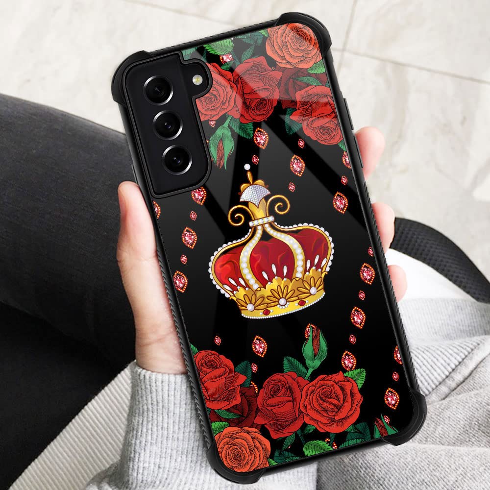 Samsung Galaxy S21 Fe Case,Rose Crown Galaxy S21 Fe 5G Cases For Girls Womens,Pattern Design Shockproof Anti Scratch Organic Gla