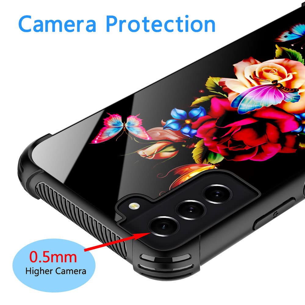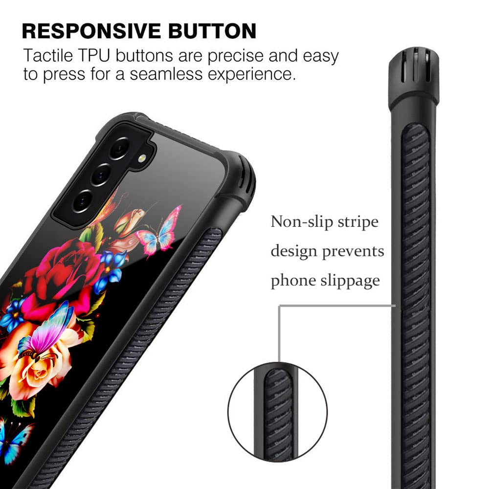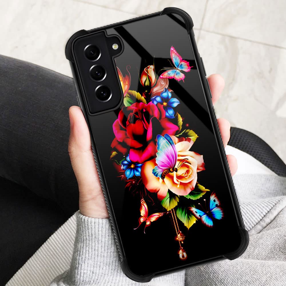 Samsung Galaxy S21 Fe Case,Summer Flowers Rose Galaxy S21 Fe 5G Cases For Girls,Pattern Design Shockproof Anti Scratch Organic G