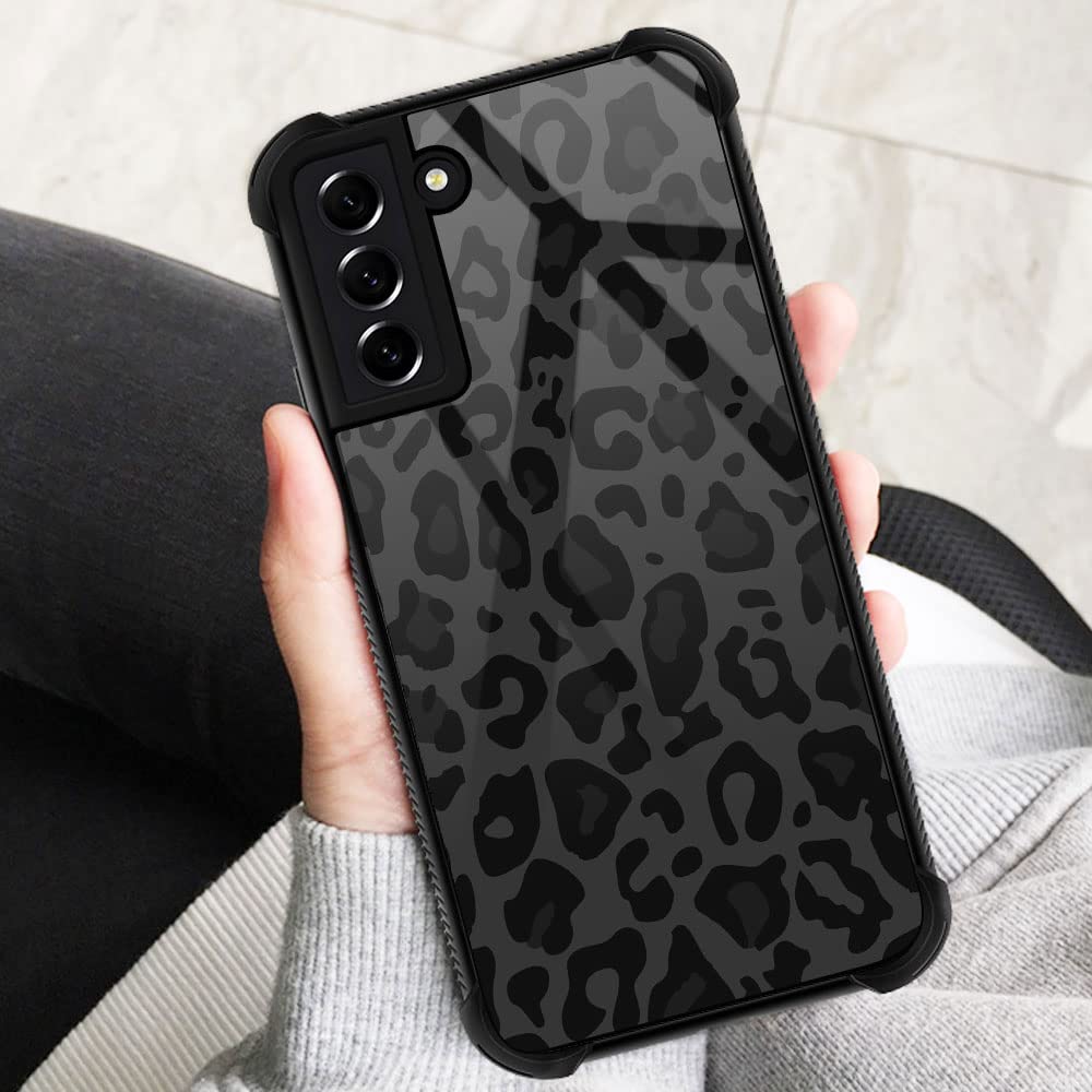 Samsung Galaxy S21 Plus Case,Black And Grey Leopard Galaxy S21 Plus Cases For Girls Womens,Pattern Design Shockproof Anti Scratc