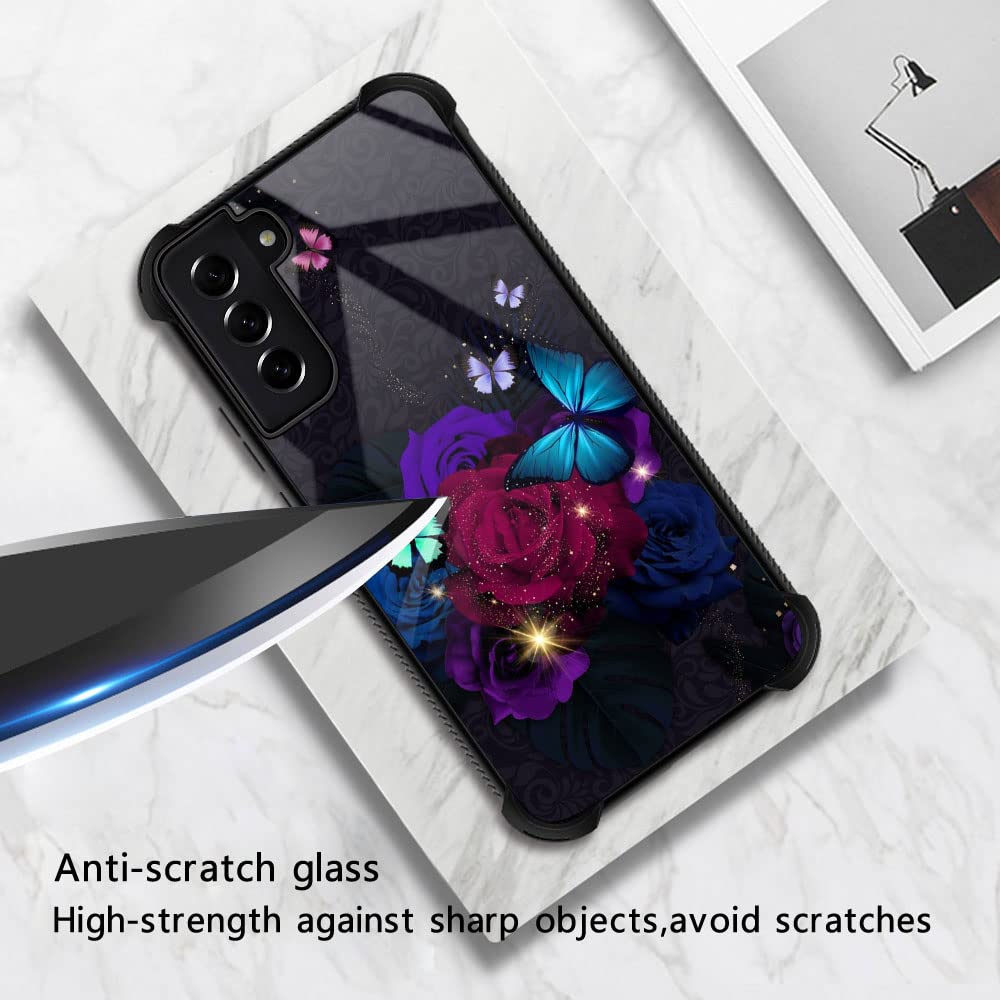 Samsung Galaxy S21 Plus Case,Blue Butterfly And Red Roses Galaxy S21 Plus 5G Cases For Girls,Pattern Design Shockproof Anti Scra