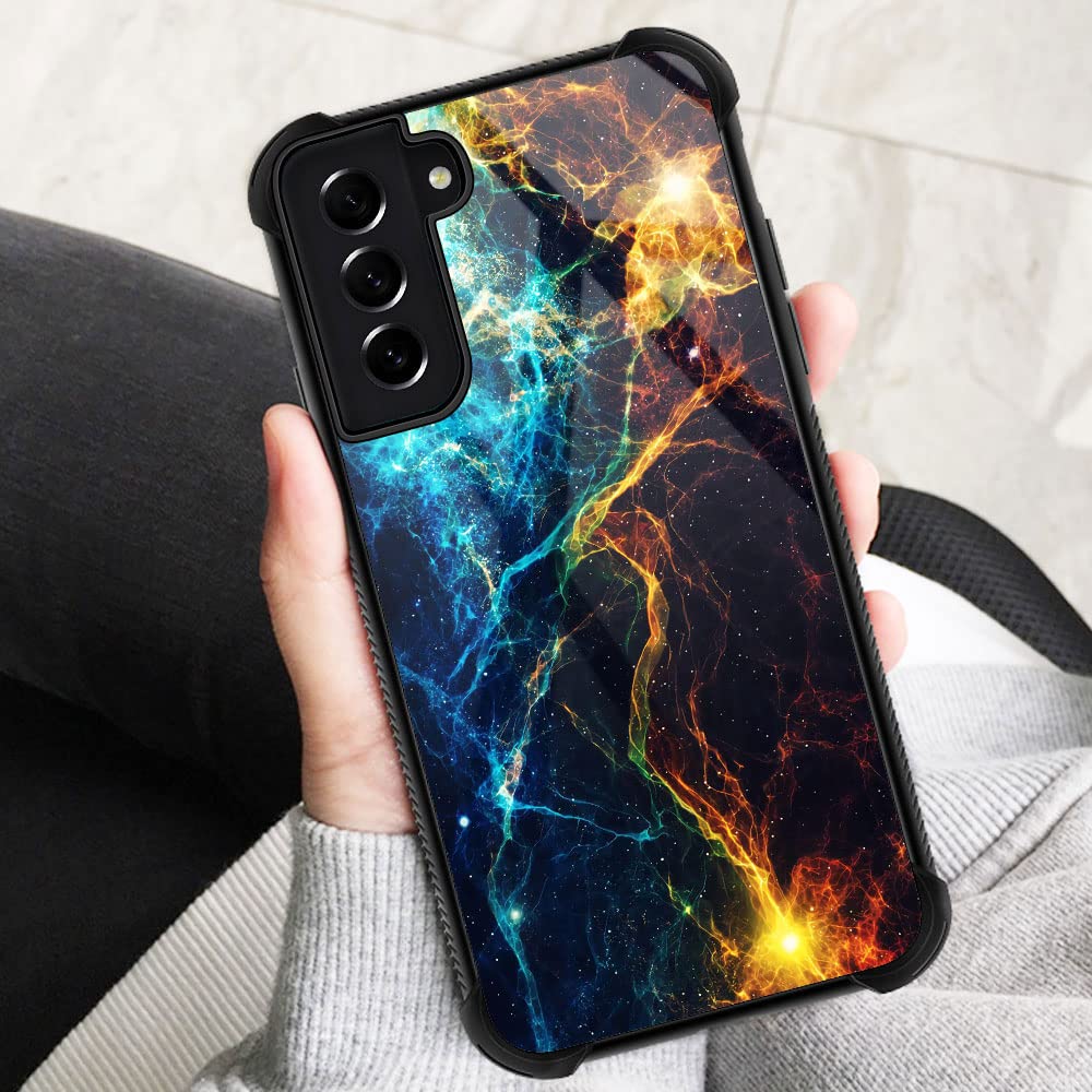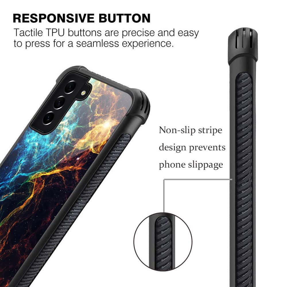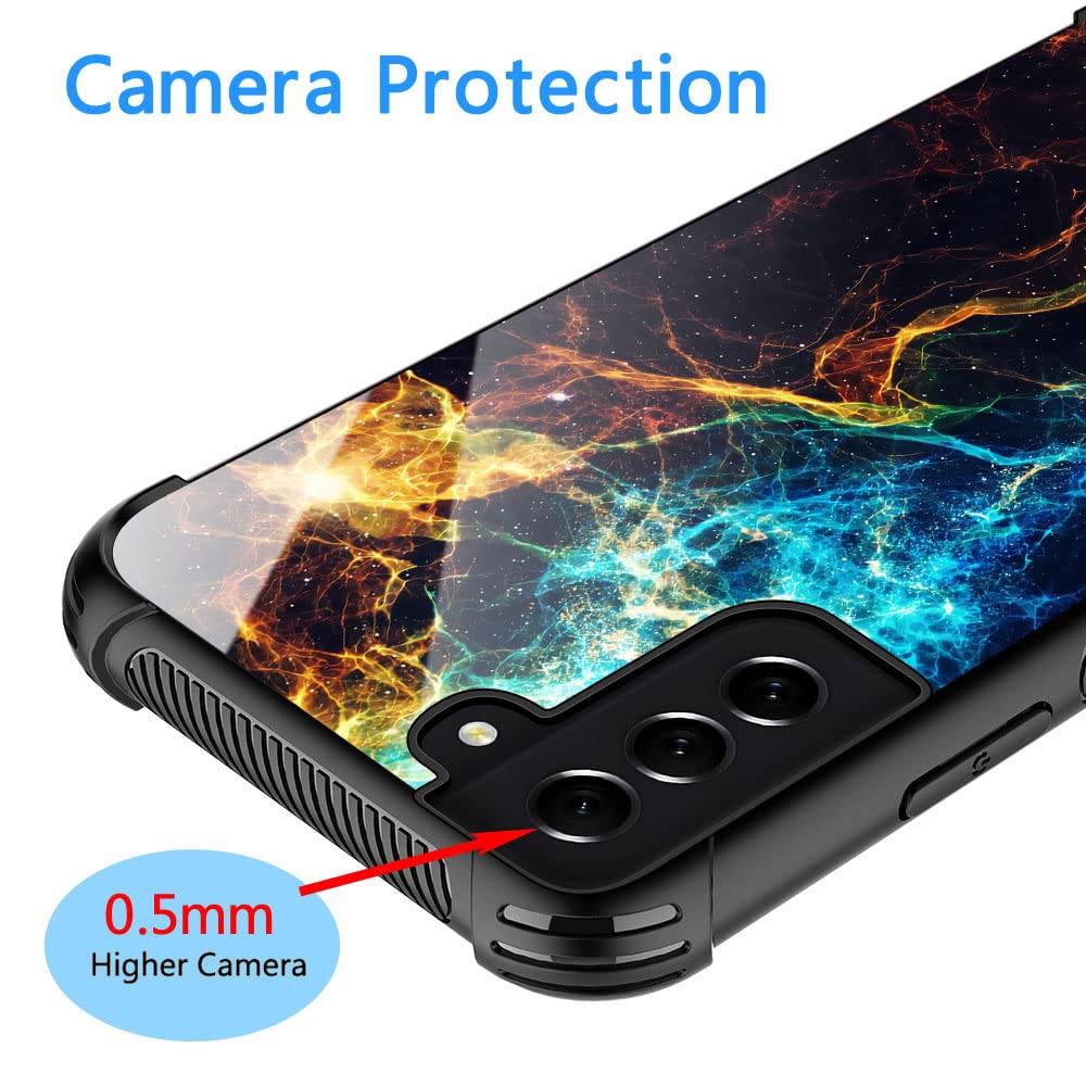 Samsung Galaxy S21 Plus Case,Blue Flame Galaxy S21 Plus Case For Boys And Men,Pattern Design Shockproof Anti Scratch Organic Gla