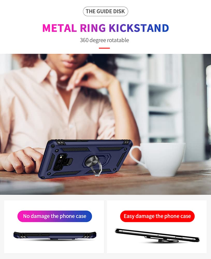 Androgate Super Ring Series Military Grade Phone Case For Samsung Galaxy Note 9 This Is A Dual Layer Designed Case But It Is Extremely Compact And Sleek The Integrated Metal Ring Which Can Be 360A Rotatable Works Pefectly As A Holer Or A Stand Whats More, The Metal Plate For Holding The Ring Can Attach Easily To Your Magnetic Car Mount Or Holder When You Drive This Will Be Your Best Choice For A Galaxy Note 9 Phone Case Enjoy Your Hands-Free Moments To Watch A Video Or Facetime With The Androgate Super Ring Series Case Frequently Asked Questions: Question 1: Will It Be Bulky In Hands Since It Is A Dual Layer Caseanswer: No, It Wont Be Bulky At All Due To The Compact Design And It Adds Minimum Weight To Your Phone Question 2: Does It Support Wireless Charginganswer: No, It Does Not Allow For Wiress Charging You Have To Remove The Case Before Placing Onto Your Wireless Charger Question 3: Does The Case Come With Screen Protectors Answer: Yes, We Make Sure Every Package Comes With 2Pcs High Quality Hd Pet Screen Protectors Question 4: Can The Ring Stand Work Both Horizontally And Vertically Answer: Yes, It Can Horizontally, The Mounting Angle Is About 70A And It Is Perfect For Nearly All People Vertically, It Can Only Mount At About 35A Above The Level, Which Is Fine For Most People But Others May Find It A Little Bit Low It Is A Matter Of Optionsrisk Free Guaranteedwe Are So Confident With The Quality Of Our Products That All The Androgate Phone Cases Are Backed With A 100 Money Back Guarantee And A 60-Day Warranty