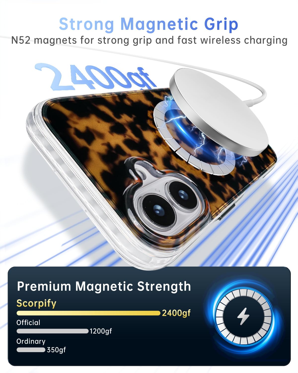Q: Is this case compatible with MagSafe accessories?A: Yes, the SCORPIFY case features built-in N52 magnets for secure attachment to MagSafe chargers and accessories, enhancing convenience.