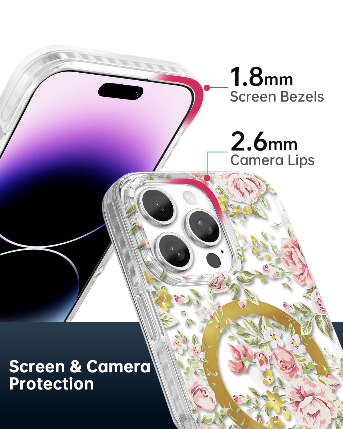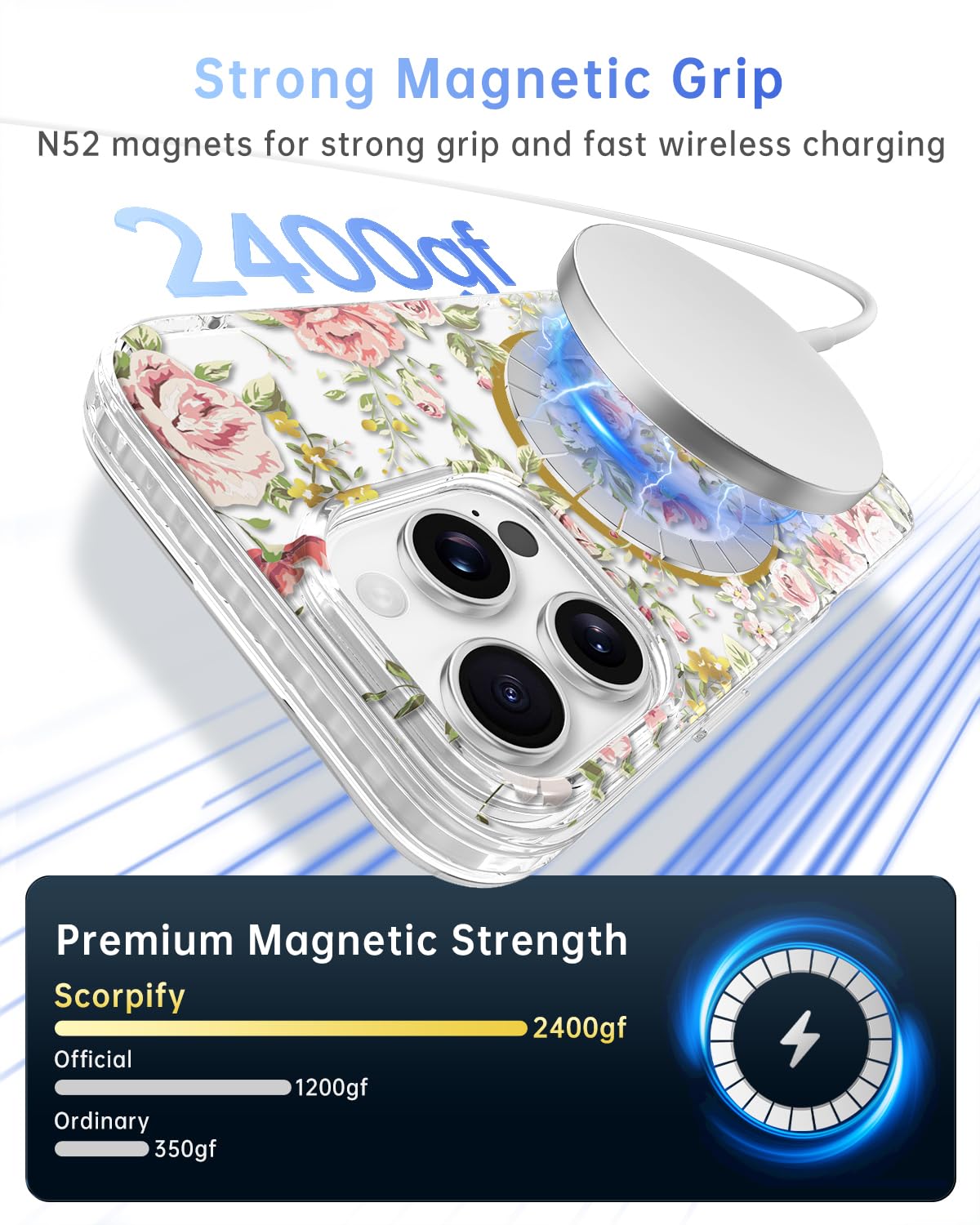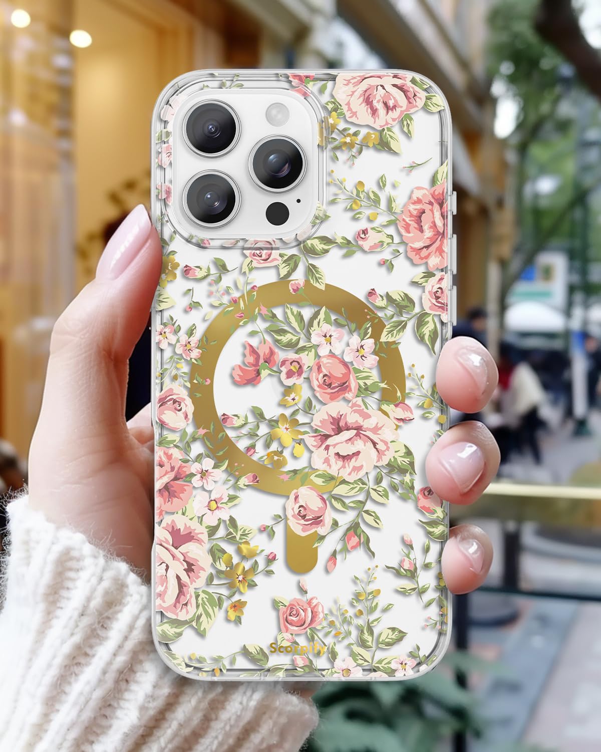 Scorpify For Iphone 16 Pro Case [Compatible With Magsafe] With Country Rose Floral Design, Cute Clear Flower Magnetic Phone Cove