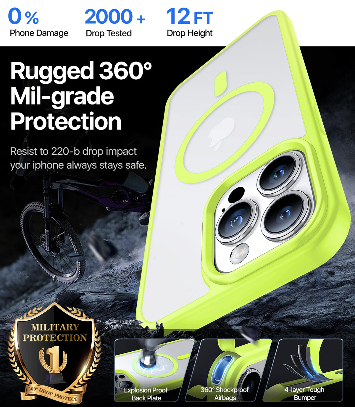 Q: What type of protection does this case offer for my iPhone 16 Pro?A: The Shiiuou case provides 360° military-grade protection, designed to survive drops from heights of up to 12 feet without damage, thanks to its advanced X-Shock architecture and air cushioning.